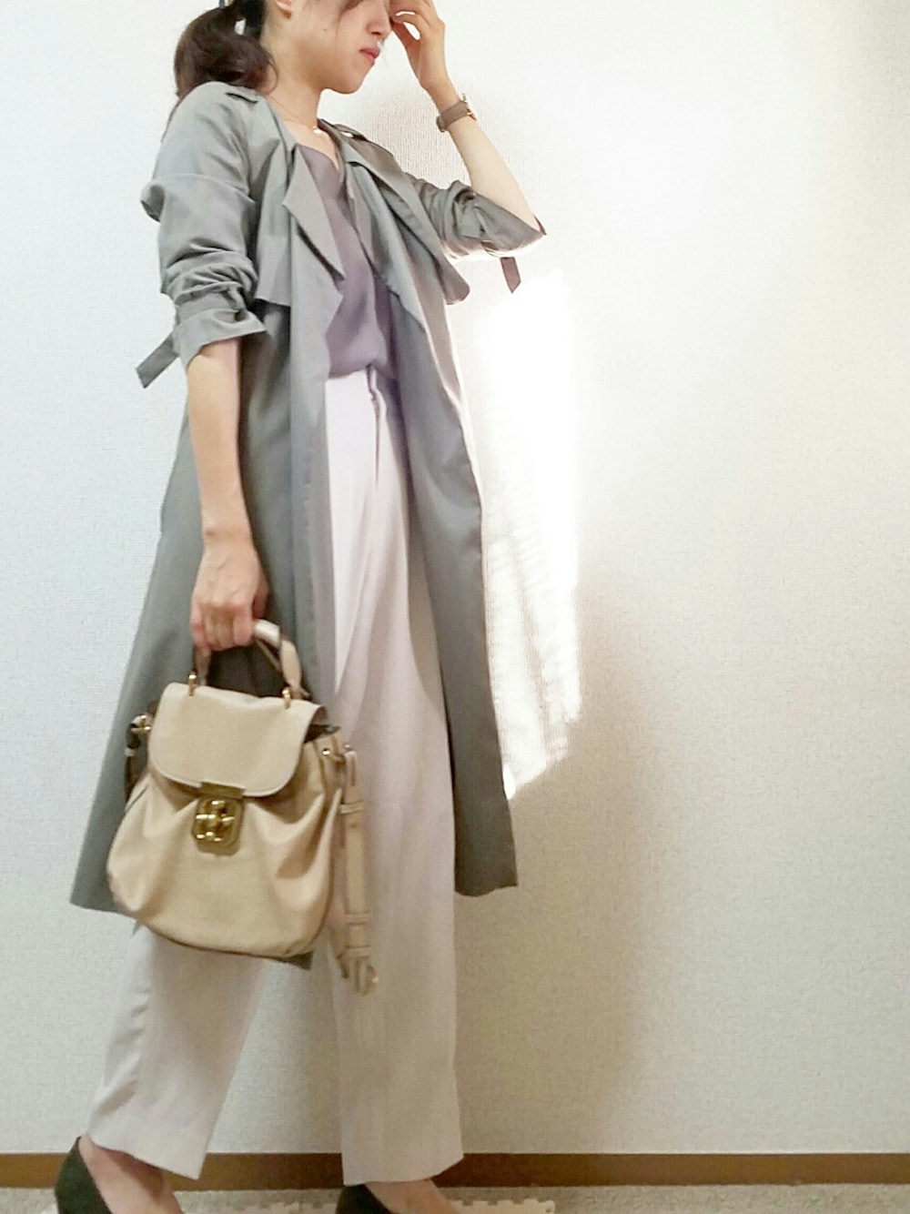 スモーキーカラーでまとめた、 今日の通勤コーデ👖👚 去年買ったテロンチ、お気に入りです😉💕