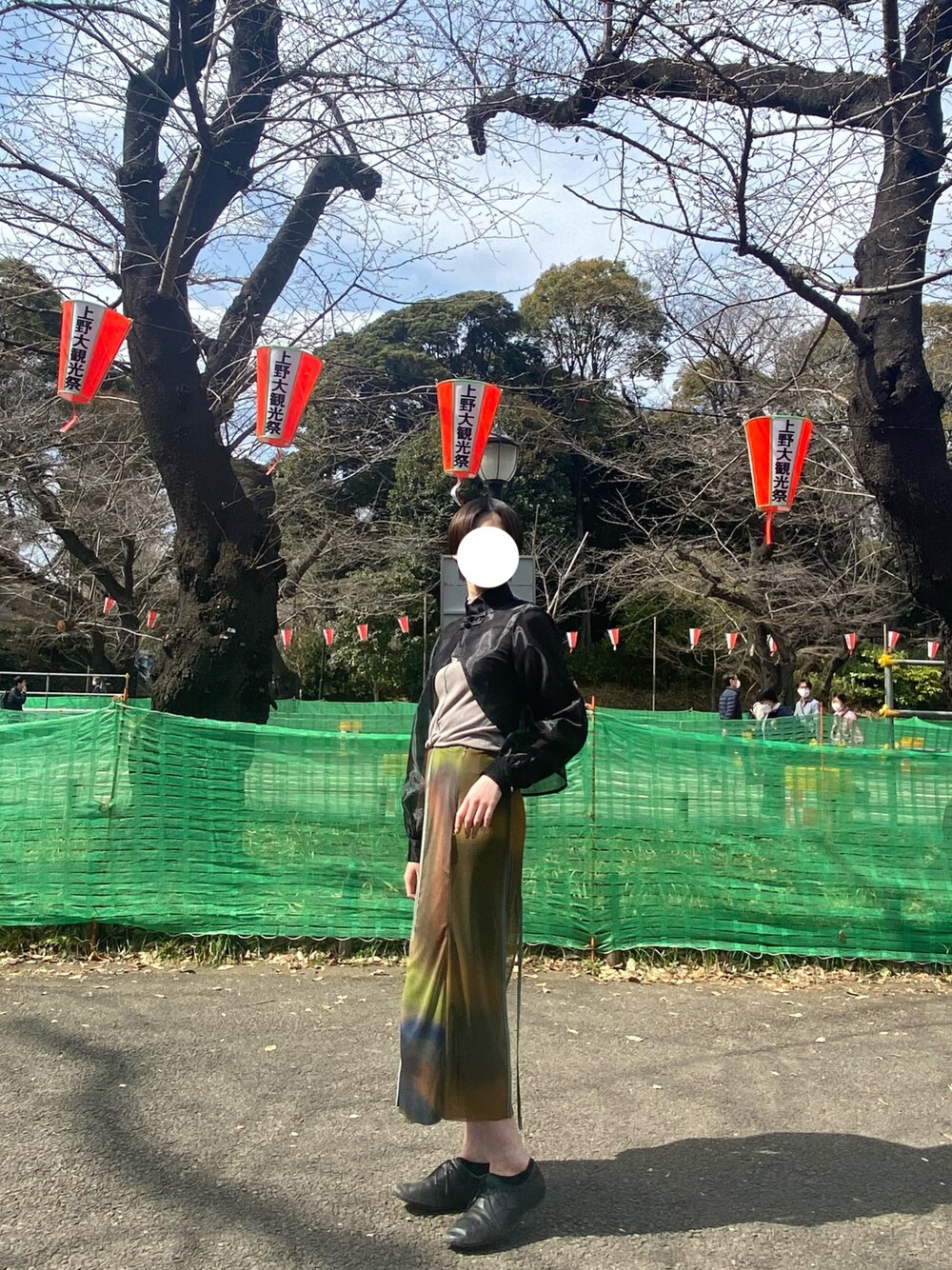 春服を新調しました〜🌸 スカートの色味がうぐいす色、上に締め色で黒のオーガンジー素材を取り入れました。 レイヤードでラインが綺麗に見えるのが良きです