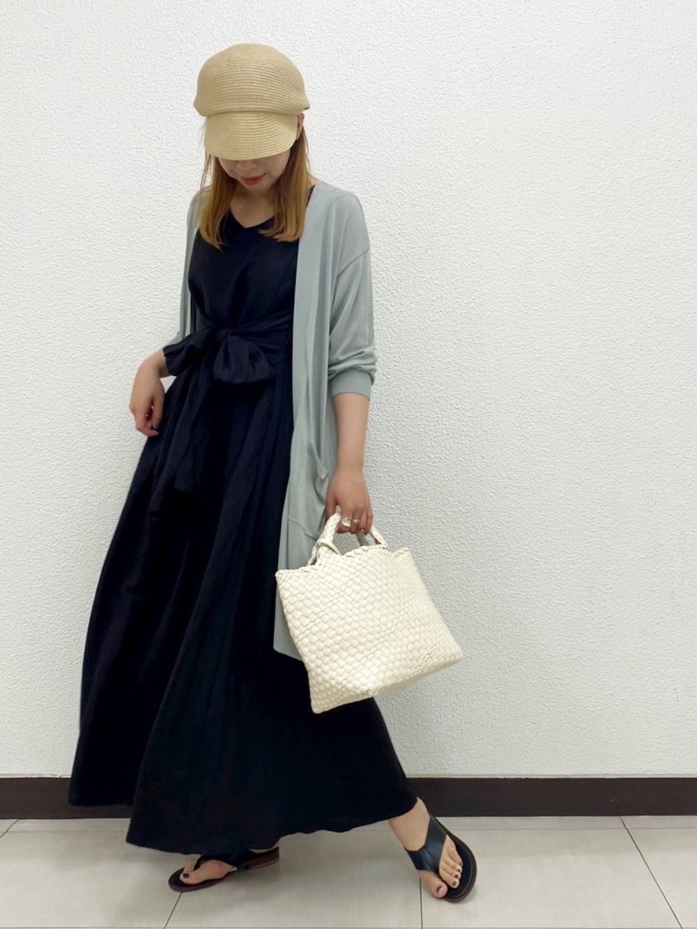 meiのワンピース「リボンマキシワンピース」を使ったコーディネート