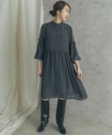 かわいいジオメトリック柄のワンピは 少し短めなので一枚でも良し、レイヤードしても良し◎な優秀アイテムです💐👏🏻 シフォン素材で女性らしさたっぷりな分、 針抜きリブパンツでラフさもプラス😌
