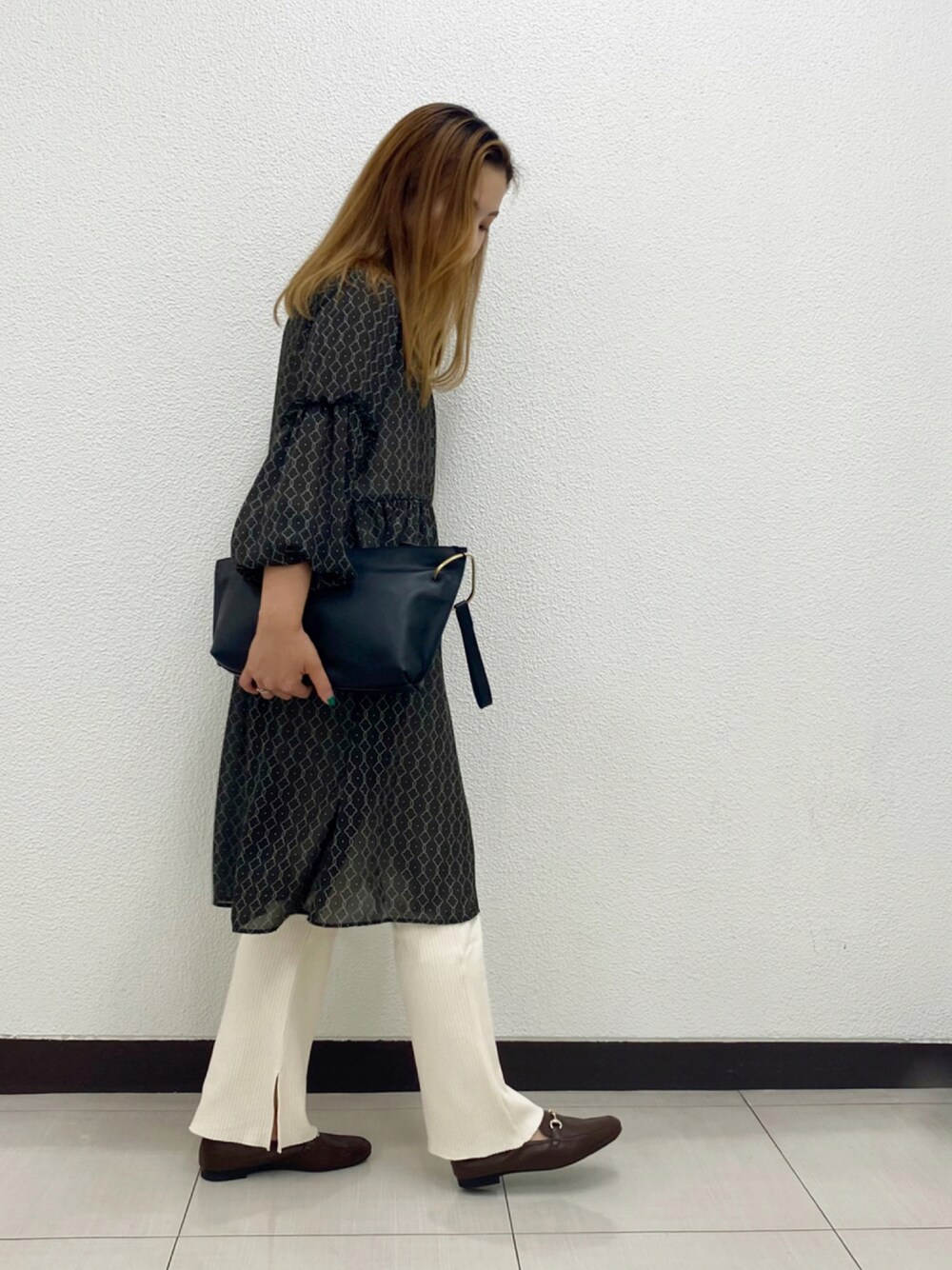 meiのワンピース「ジオメトリックミニワンピース」を使ったコーディネート