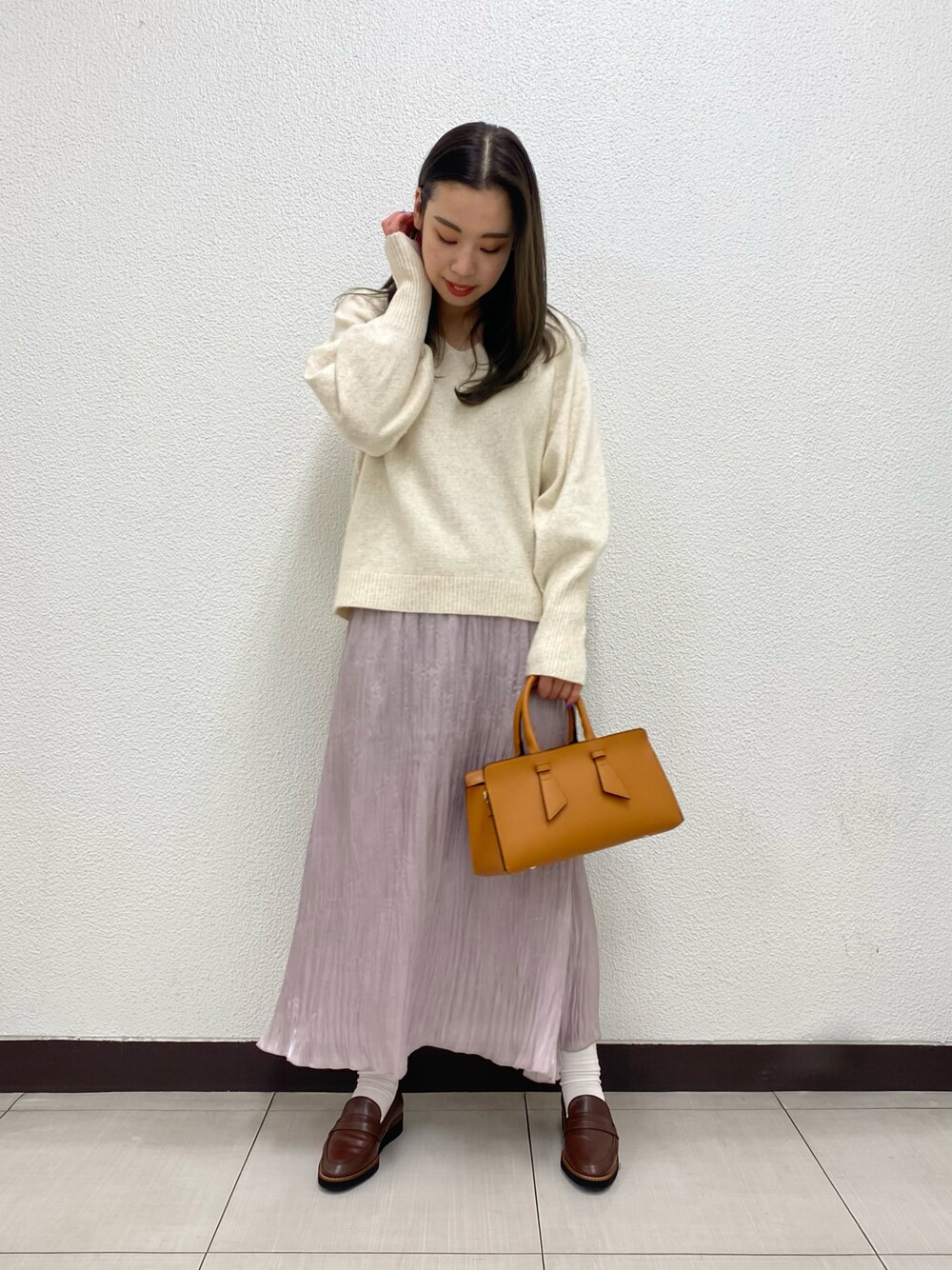 meiのニット/セーター「ボリュームスリーブハイゲージニット」を使ったコーディネート