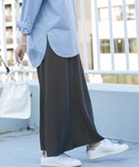 落ち着いたトーンのスタイリング👒 シャンブレースカート、最高の履き心地です◎
