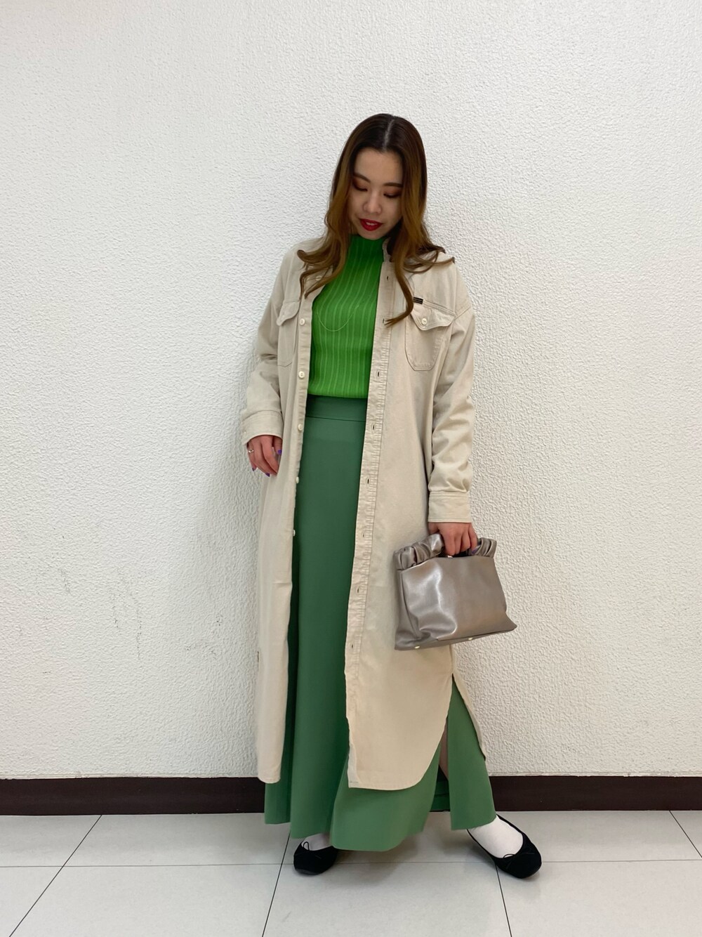 春の気分は完全に緑、、🌱🌿💚 ベージュを一枚重ねるだけでトライしやすいトーンに調整◎