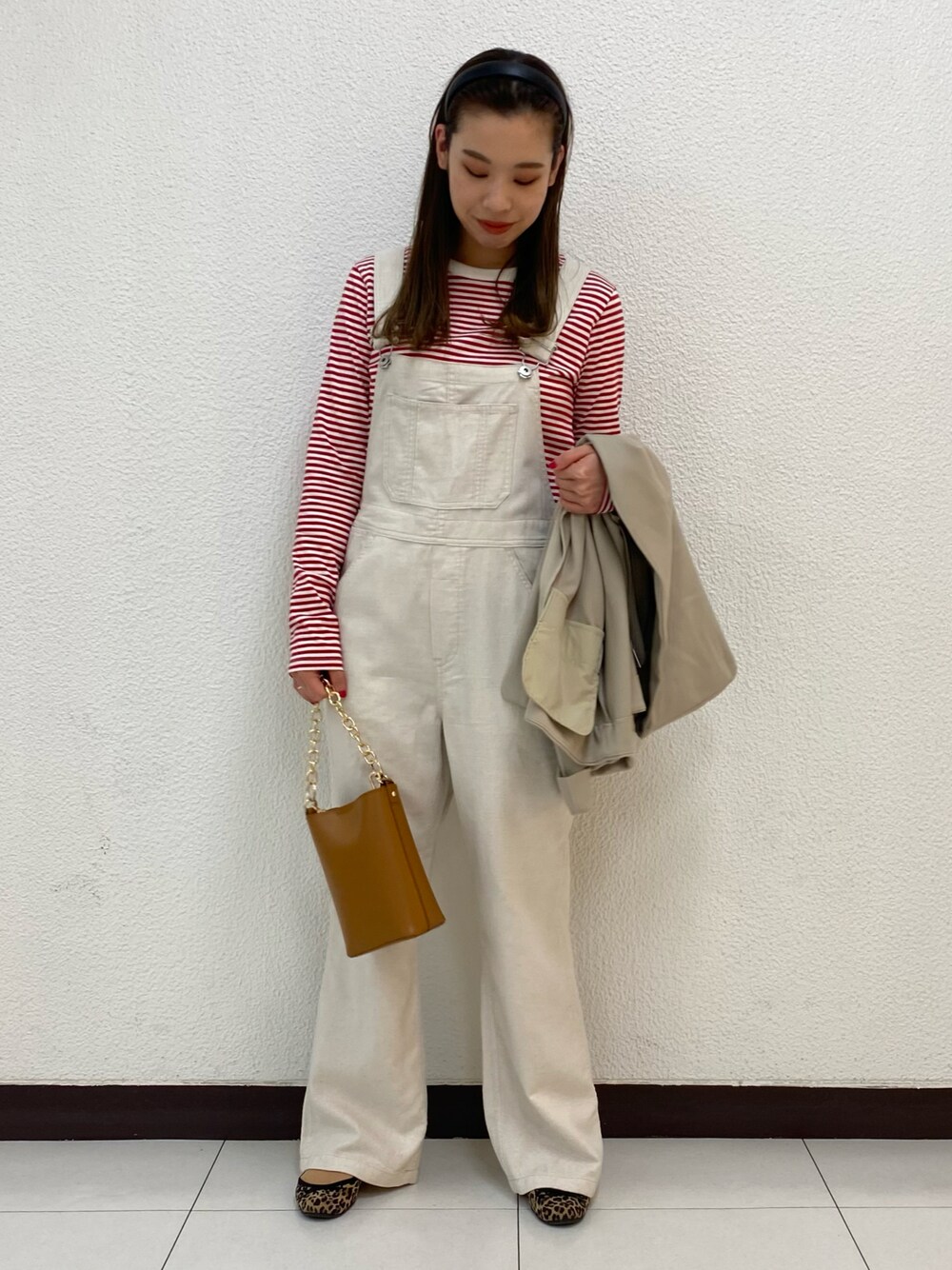 カジュアルになりがちなオーバーオール、、 素材や形で少しきちんと感をプラスしました〜!