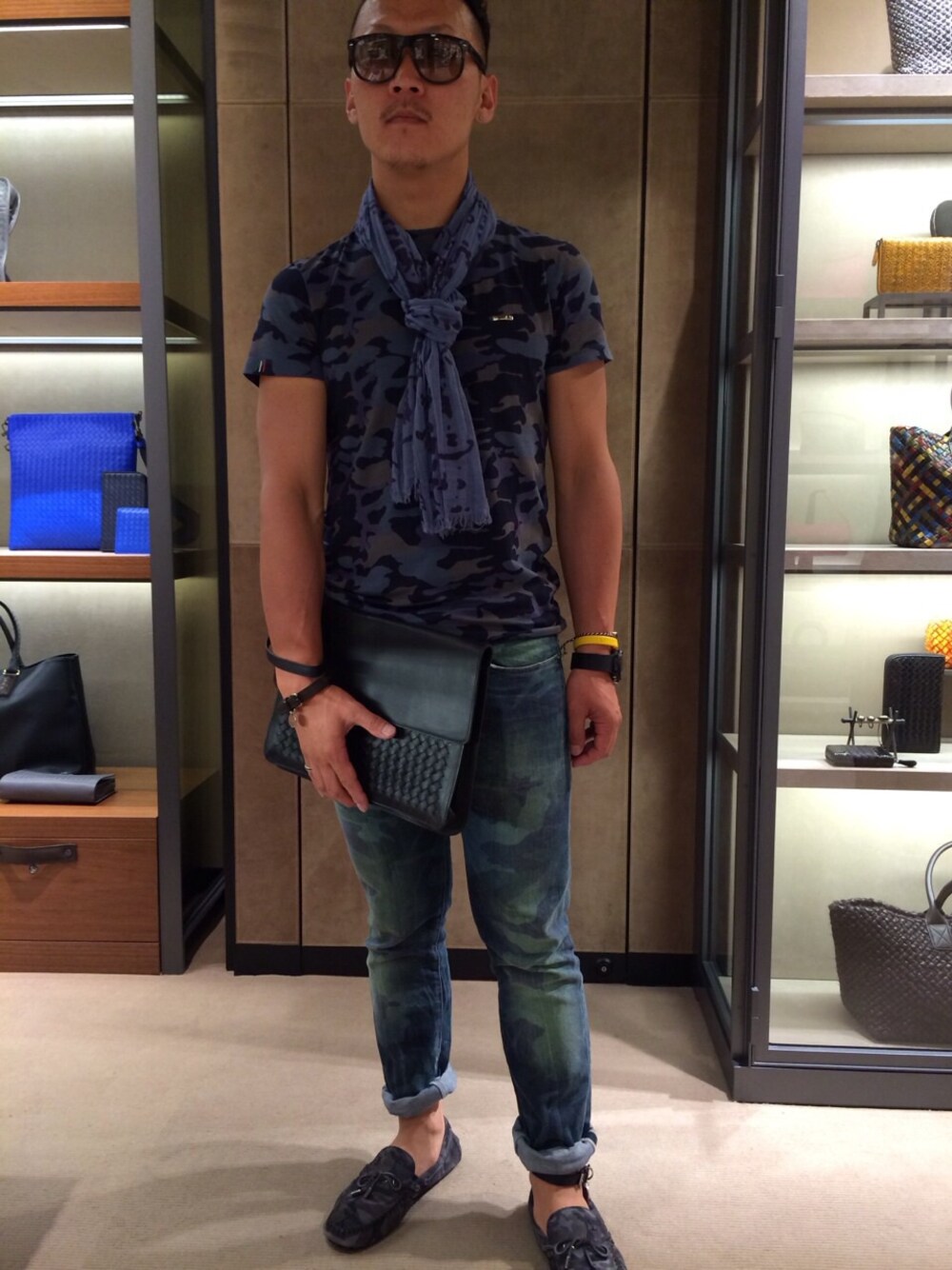 Tシャツ... GAS デニムパンツ... GAS ストール... GAS シューズ... LOUIS VUITTON 総カモフラ柄。 ネタコーデです(笑)