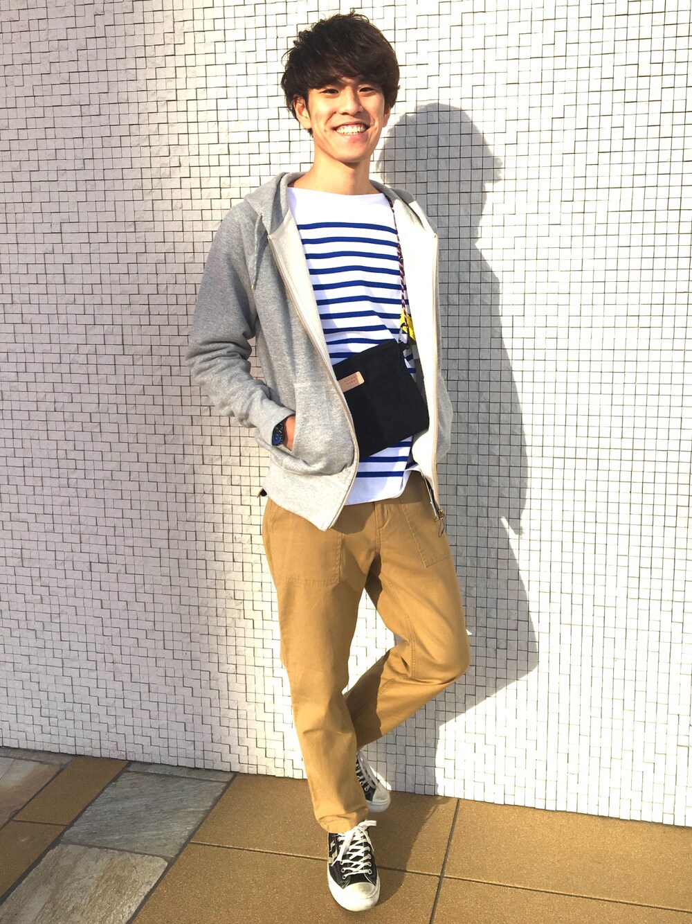 ラフなお出かけスタイル〜💁♂️ ボーダーとジップアップパーカーの組み合わせは間違いないですね🙆♂️