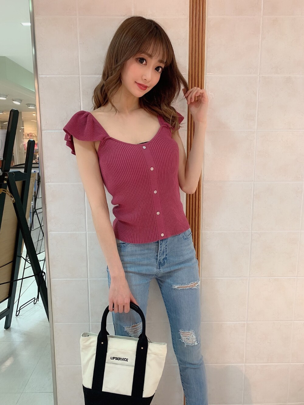 fumiのニット/セーター「フリルスリーブボタンニットビスチェ」を使ったコーディネート