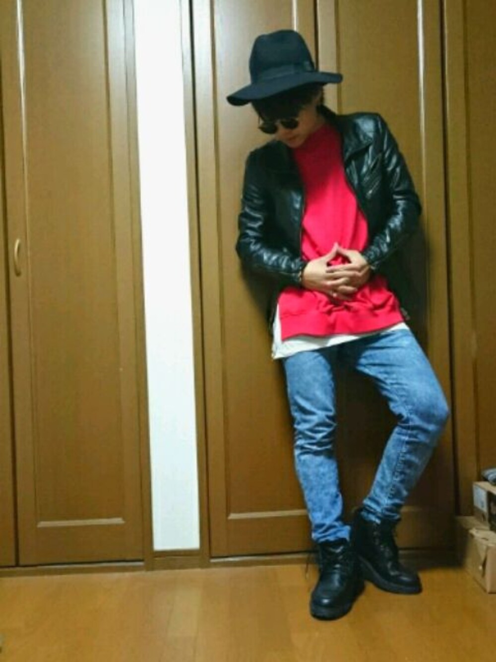 11/25 本日のコーディネートです! 今日は黒でまとめて 差し色に赤を入れました! いやー、なんだかんだ このGUのスリットスウェット、 お気に入りです! サイズ大きめに買って、ストリートっぽい 感じを出せますね!!! あとブラックとグレーが あったのでブラックも買えば良かったです そろそろレザーも 新しくしたいなと思う今日 この頃です