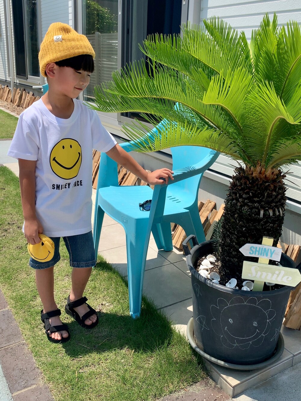 ニコちゃん好き♥︎ 西松屋で378円のプチプラ価格。 バックプリントもかわいいよ。 夏休みだねーーー◡̈☀︎