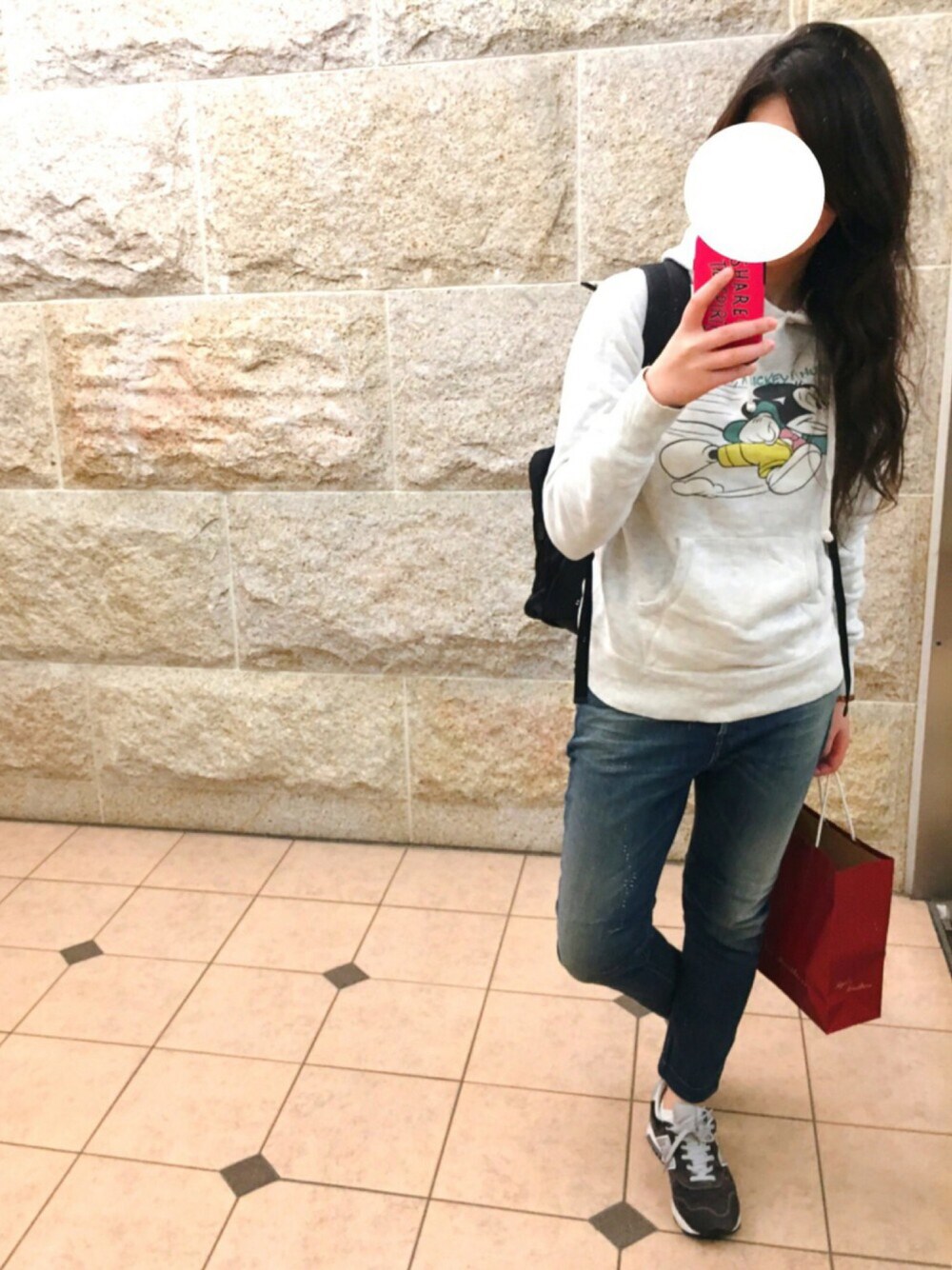 ど カジュアル👟🎶 キャラもんはあまり好まないけど このミッキーパーカーは ちょいちょい着ちゃう🐭💗 だからミッキーってすごい✨ 赤い紙袋から漂う生活感🙄🛍🎶笑