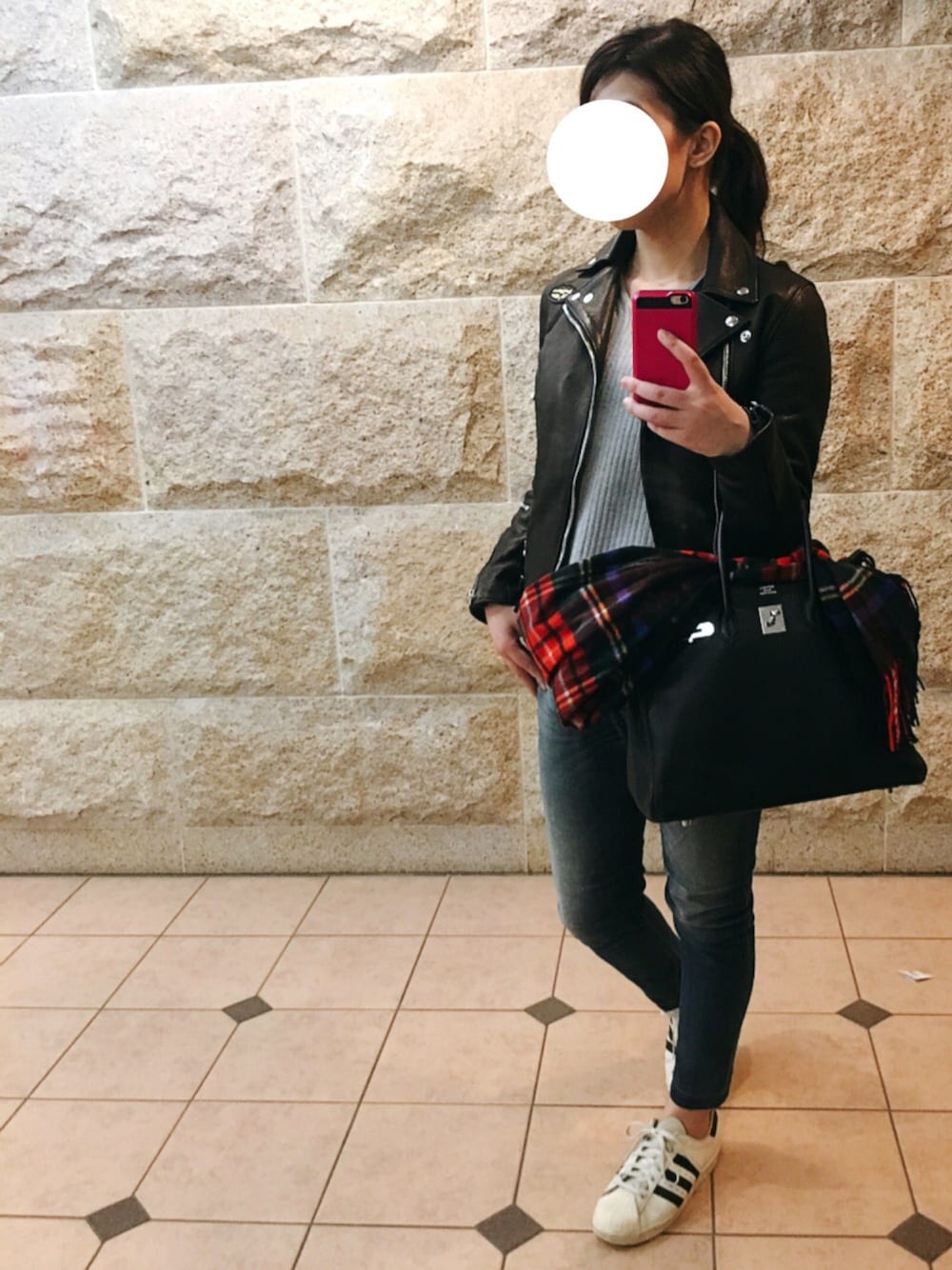 いよいよ寒くなってきたから 必死でライダース着てる😂 ヒール履きたかったけど ここは80sスーパーで ハズして正解🙆💜