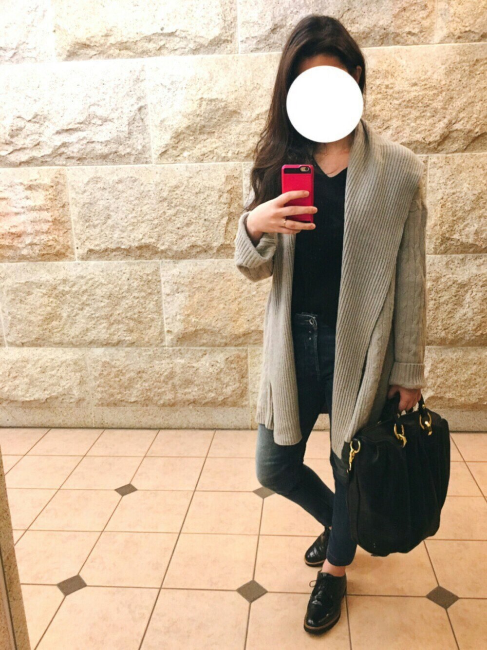 ヒートテック、着始めました☃️ ロングカーデはかれこれ15年前くらいに 母が買ってたもの💙 オーバーサイズな今年にぴったり💗 しかもカシミアやから ふんわりあったか💜 あんなにもタイトスタイルや ローライズデニムが流行ってたのに… 時々はアップデートしなきゃならんすね😂 あ″ぁーー、髪切りたい🙄✂️