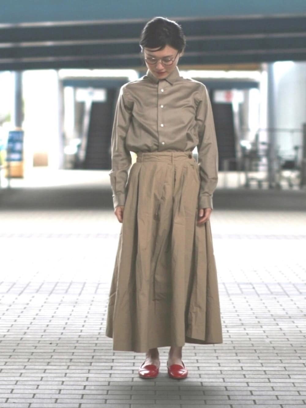 ベージュ!!! インディヴィのジャンシャツに、ドミンゴのマキシスカート。 ベージュに赤! 好きな組み合わせです‼️ 昭和の事務員っぽくて、中々好きなコーデです😻 今日は、特にメランコリックな気分ではないけど、ずーーーーーーーっとリピートして聴き続けて、2時間くらい聞いてたこの曲! いい曲です😻🎸 毎日頑張って更新してます🙇🏻♀️ insta→gooddeal1999