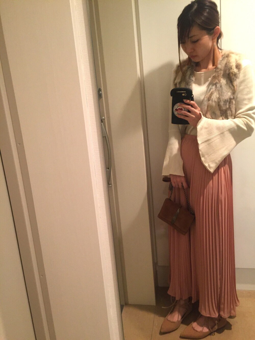 いつもいいね、セーブ、コメントありがとうございます♪ 今日は女子っぽく淡い色合いにしてみましたー😊 WEARで見たZARAのファーベストがカワイイと思い、さっそく店舗で試着してみたのですが... 私には似合わなかった😭😭 ということで、断捨離しようかと迷っていたファーベストを活用😁✌️️ プリーツスカートとレースアップパンプスはセールで安くgetしましたー😆✨ ファーベスト、パンツにも合わせたいなぁ👖💕 ご覧いただきありがとうございます♪