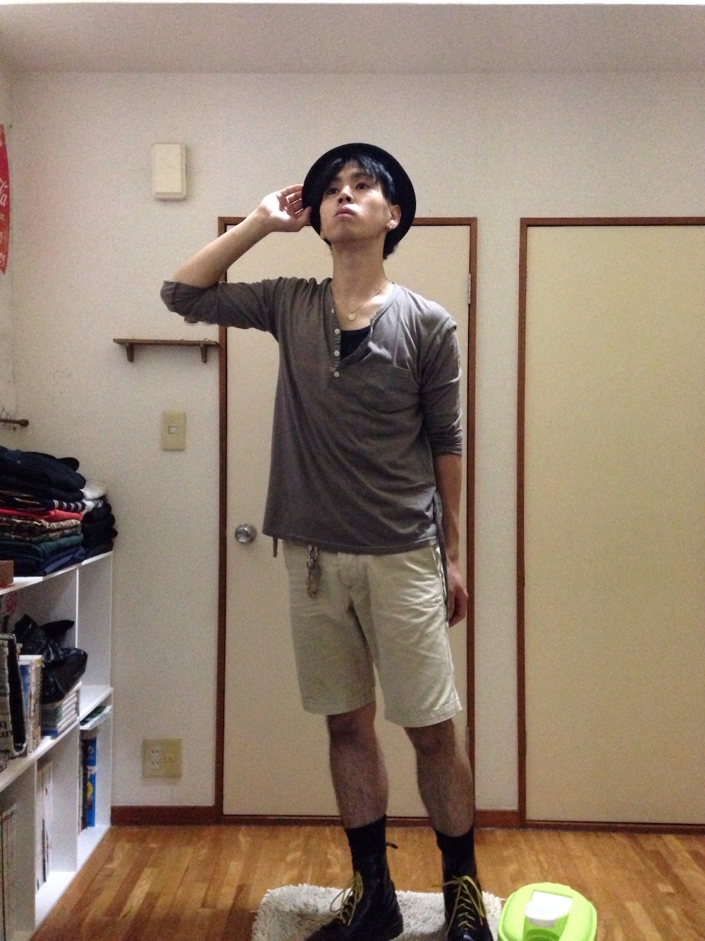 コーデのポイントはヘンリーネックから見えるタンクトップとコインネックレスです♪ そろそろショーツがキツくなる季節ですね 今月まではけるかな?