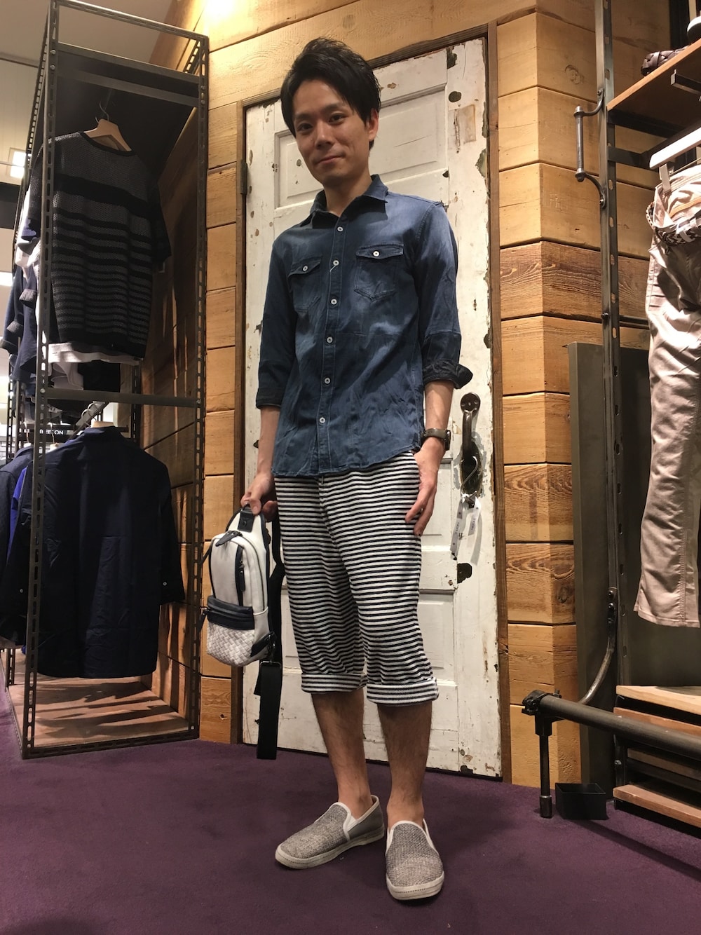 皆さんこんばんは🌙 この週末はホントに暑かったですね☀️ もう時期海に行きたくなる季節ですね🏖 今回はそんなちょっとだけ海を意識したコーデにしてみました😄 ブルーを基調にしたワントーンでまとめて、パンツをボーダーにしてちょっとマリン感を出してみました🐬