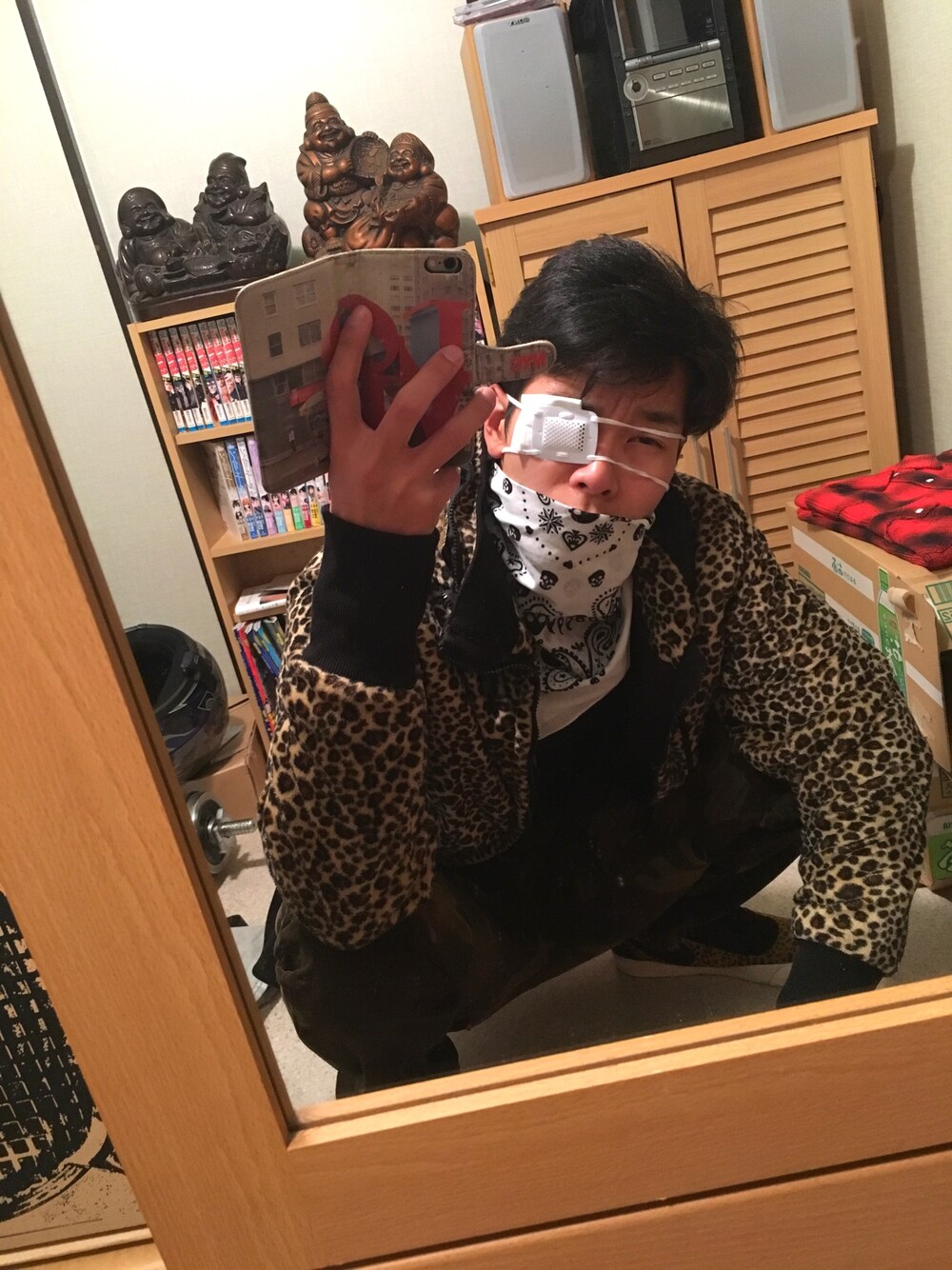 眼帯してたら中二病患った😨 #独眼竜 #なんとなくうんこ座り #オラオラ #似合わない #やめよう #明日は真面目に仕事 #良い子だから早く寝よう