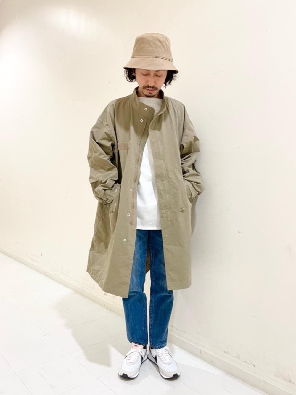 ■年齢:30代後半 ■身長:171cm ■普段サイズ:アウターL/ボトムスL/シューズ26cm 【サイズ感】 トップス:全体的にゆったり、丈は長め ボトムス:細めならSサイズ、太めならLサイズ シューズ:標準的 【コーディネートポイント】 ミリタリーコートをメインにスタイリング致しました。コートのカラーとバケットハットのカラーを合わせたのがポイントです。