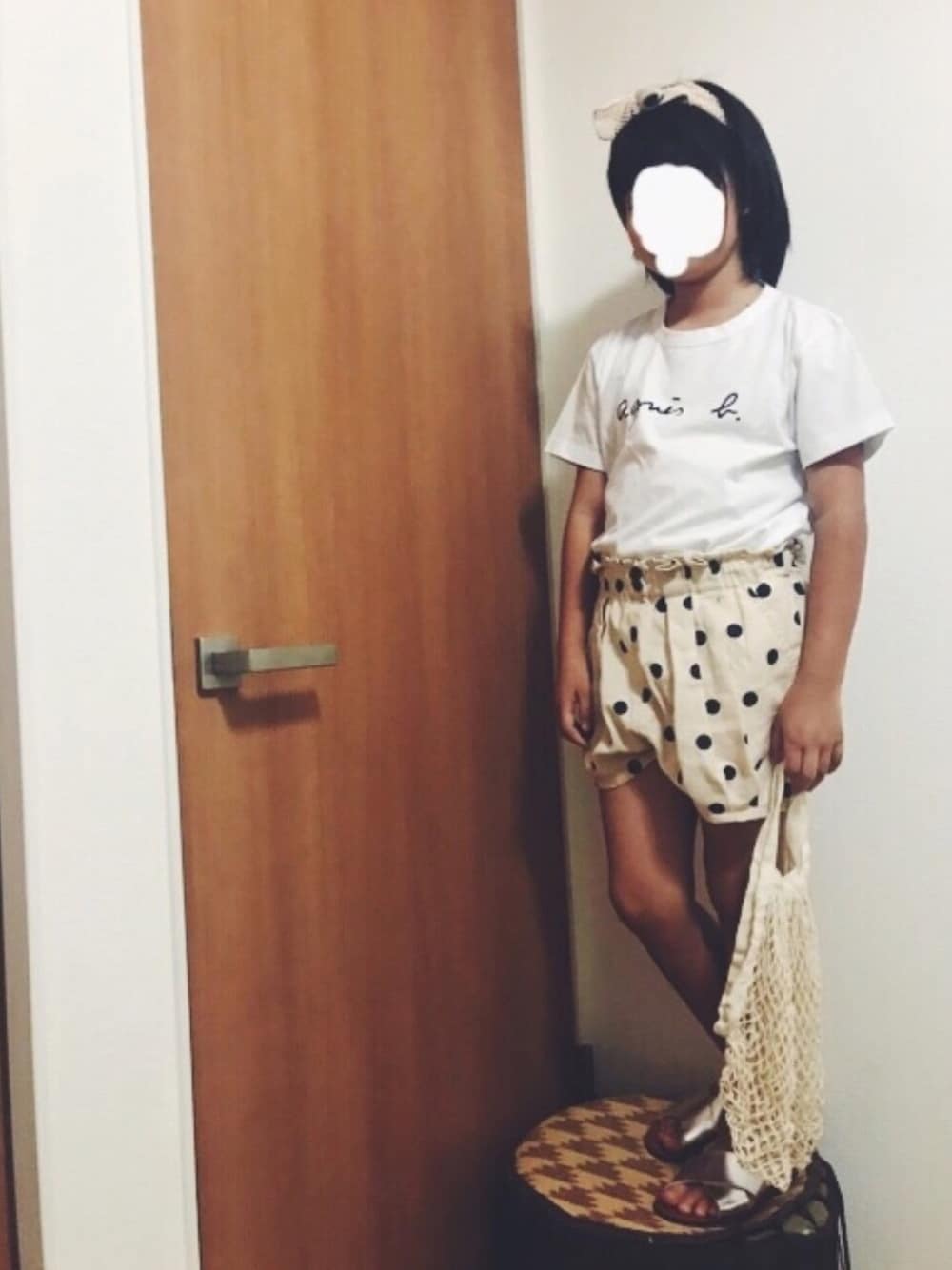 ヘアバンドコーデ♡ アニエスのロゴTとショーパンでガーリーに(๑′ᴗ‵๑) 小窓は最近のkanさんの相方、名付けてうーぴょん。泣きそうな顔をしているのがかわいいそうで大好きとのことです♡