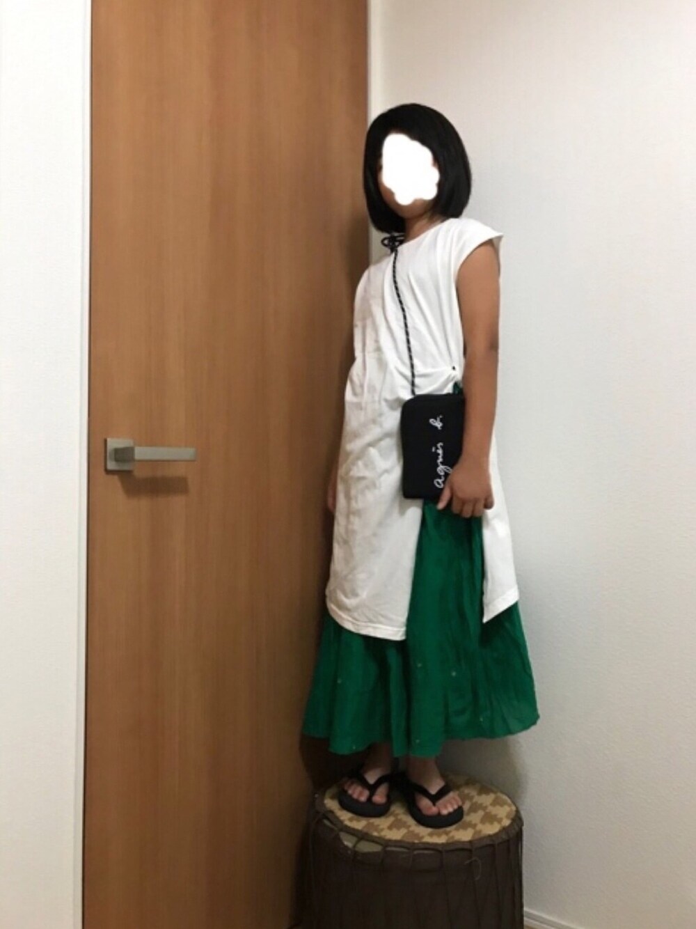 鮮やかなグリーンのスカート、まずは白合わせ♡ 小窓はぶりっこしてるkanさん。
