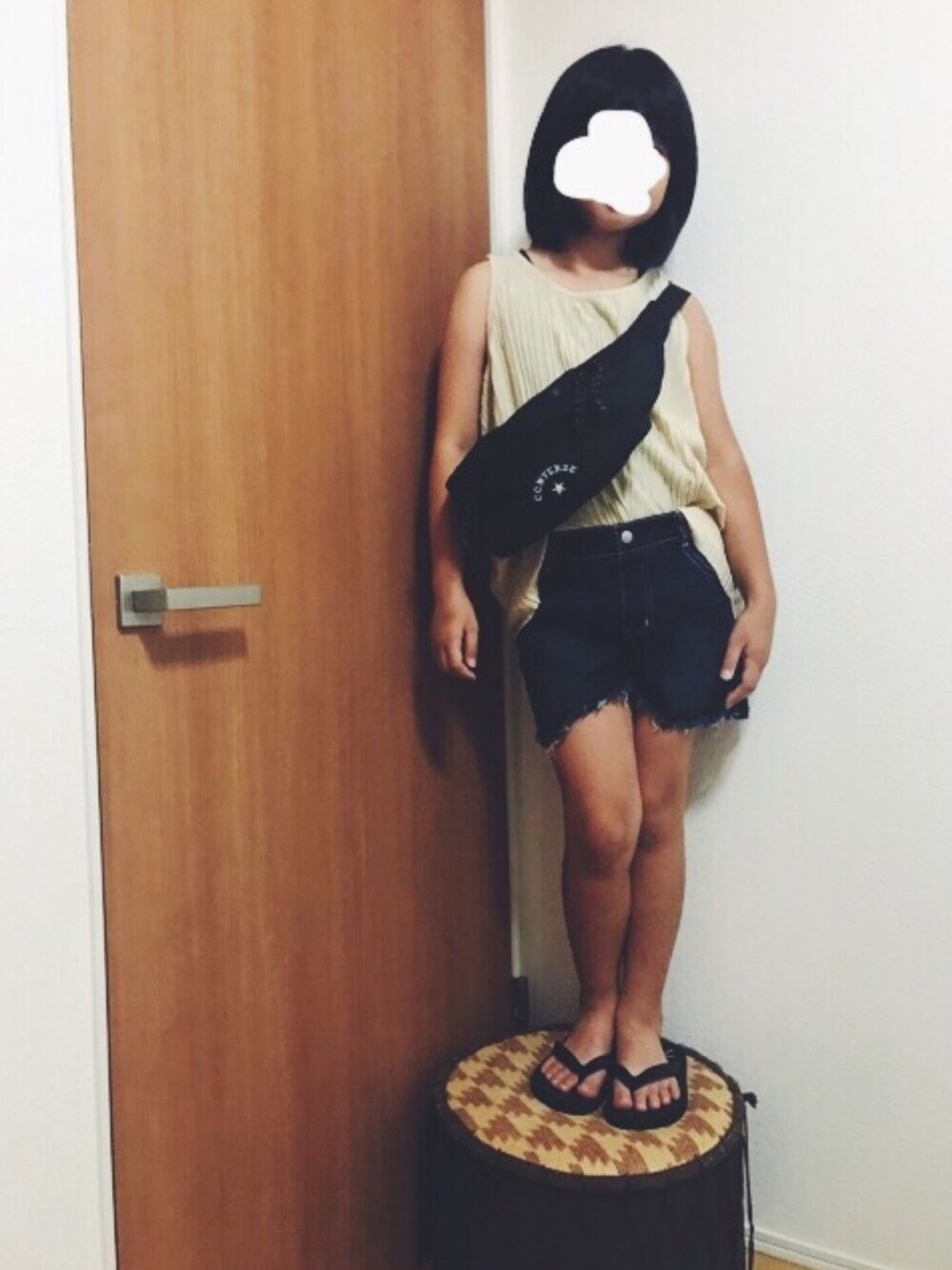 k☺︎7のタンクトップ「プリーツタンクトップ(130~150cm)」を使ったコーディネート