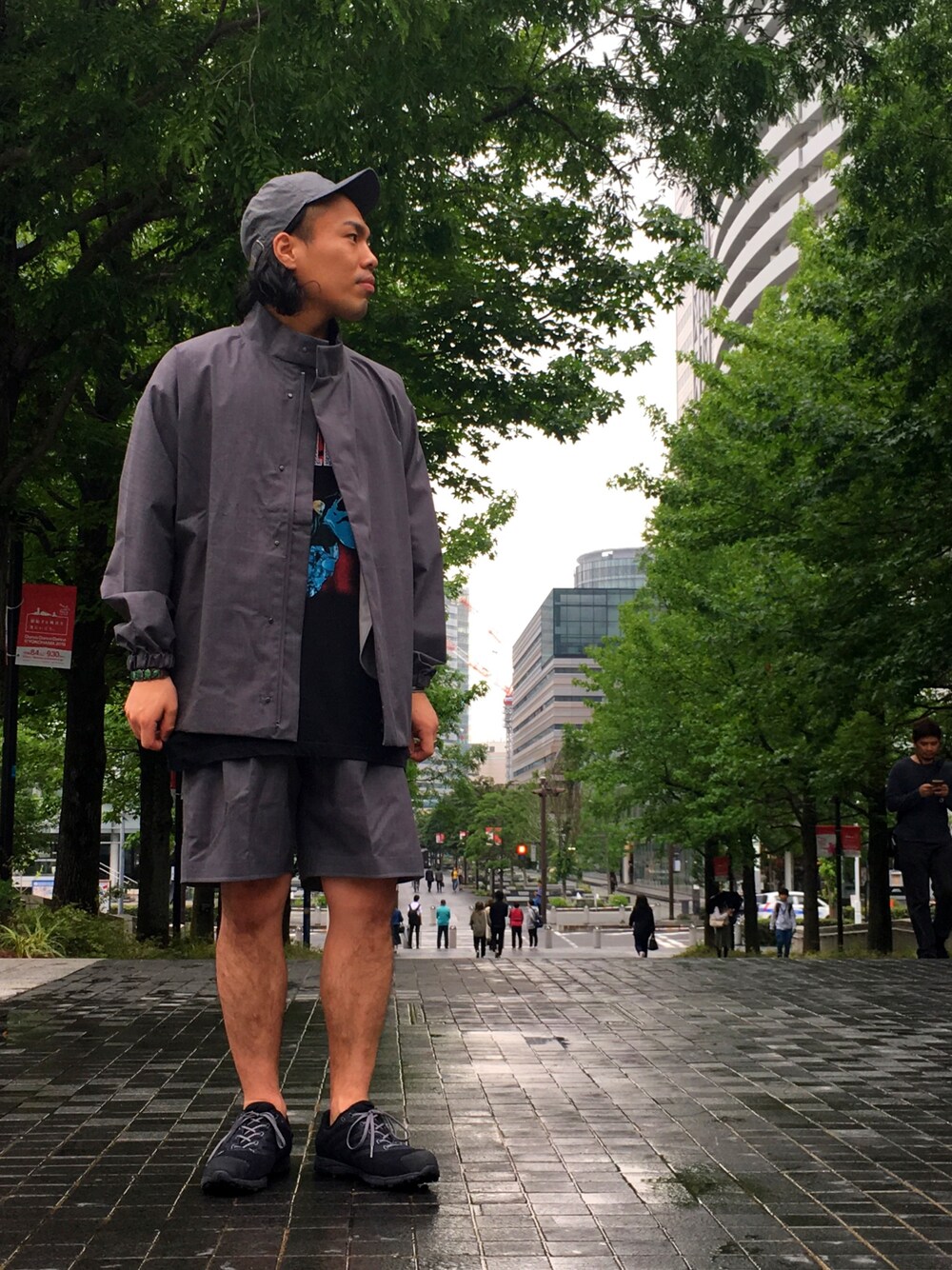グレートーンで揃えてみました 防水機能が備わったセットアップ シューズもGORE-TEXで梅雨時期に 頼りになる一足です