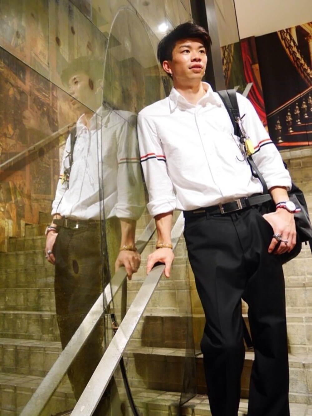 お久しぶりです! shirts:THOMBROWN pants:The Beausnob backpack:undercover rings:CHROMEHEARTS