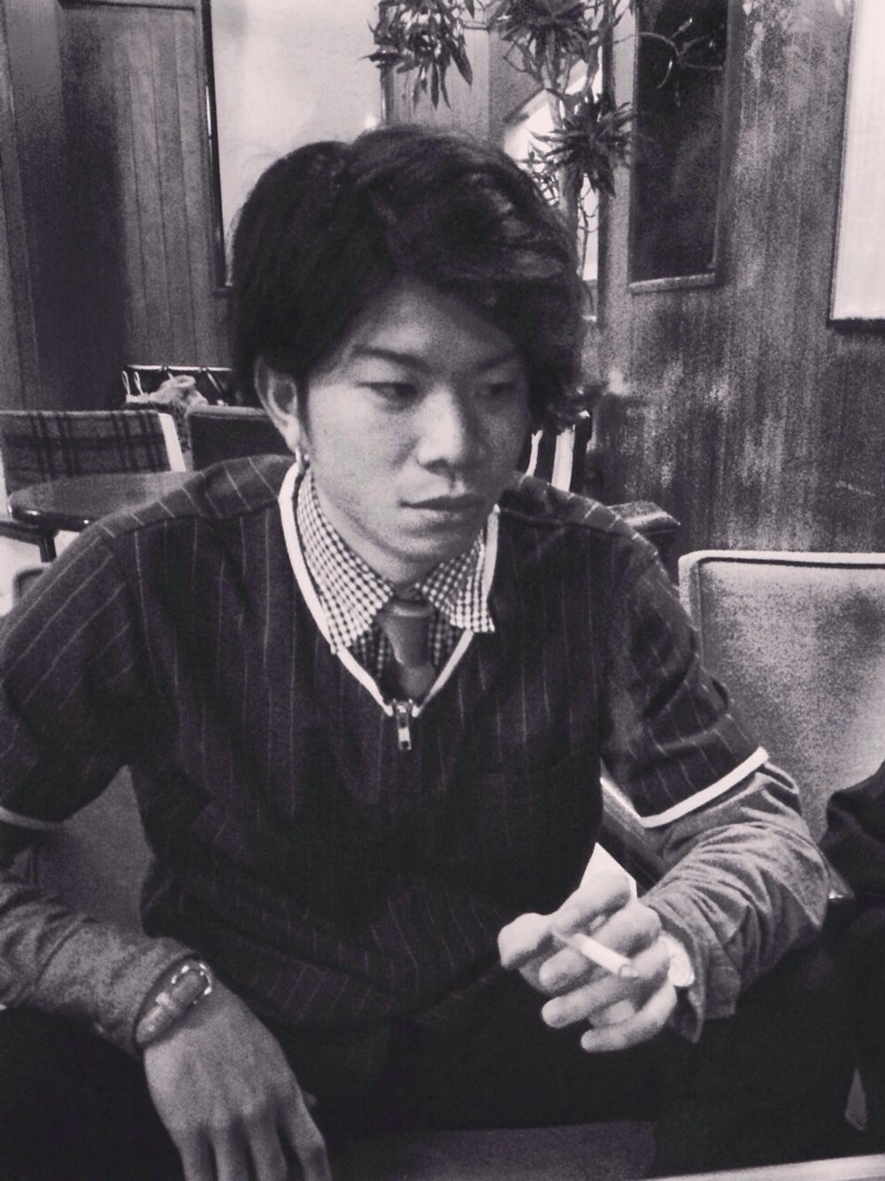 shirts:soe tie:soe テスト期間真っ最中。 今日は小休止でカフェにきました。