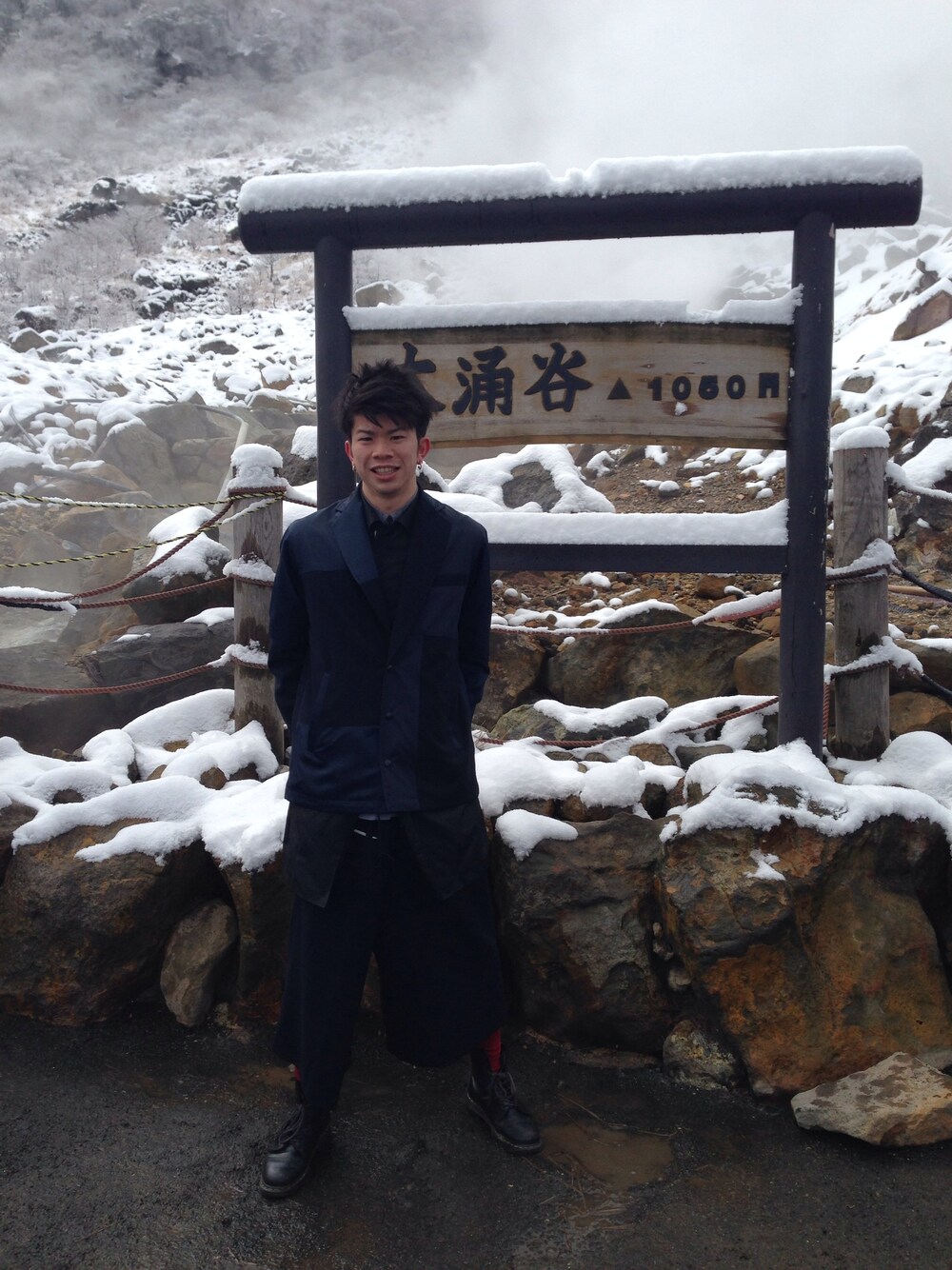 先月、箱根旅行に行った際の一枚。 ジャケット、タイパンツはGANRYUです。