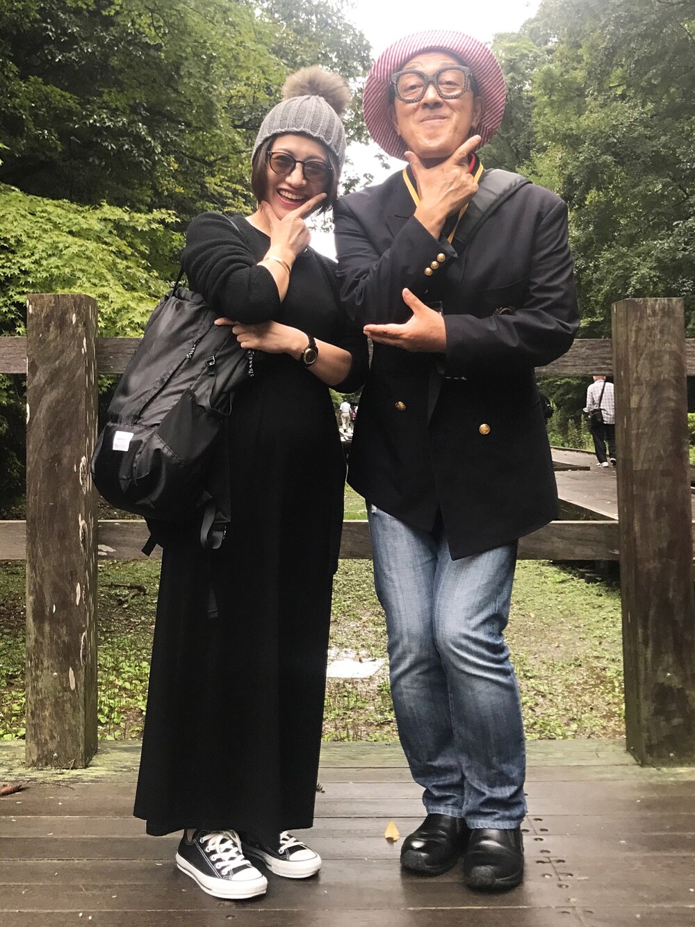 あご勇さん と あごポーズ✌️ オールブラックコーデ + ニット帽😆