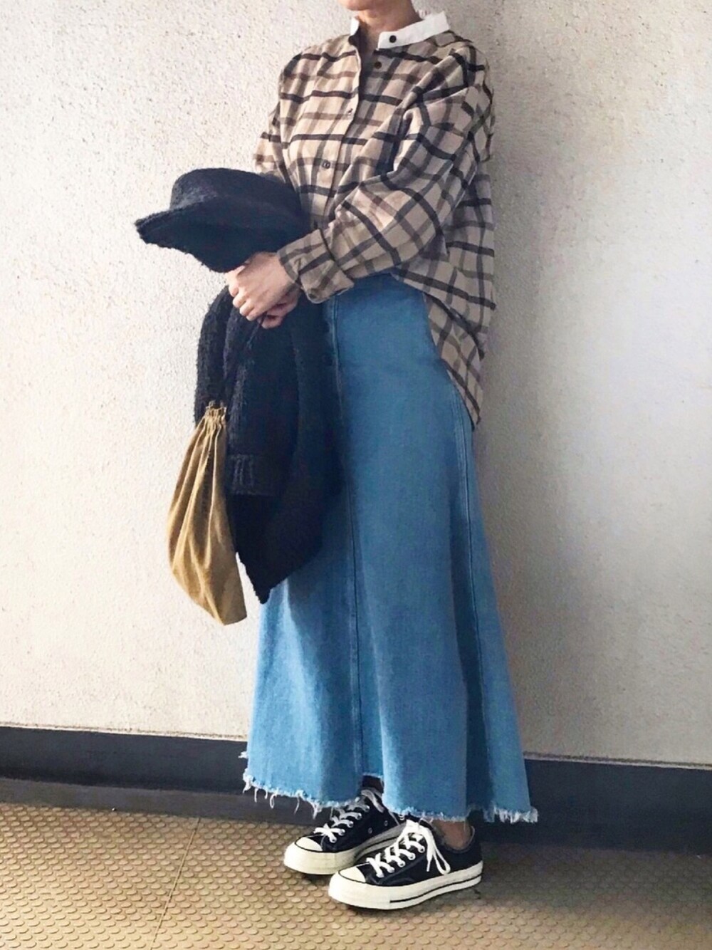チェックシャツとデニムスカート。 両方ともTODAYFULです。 コンバースは アメリカから買ったおろしたて。 チャックテイラー復刻70's ファーストストリング☺︎✨