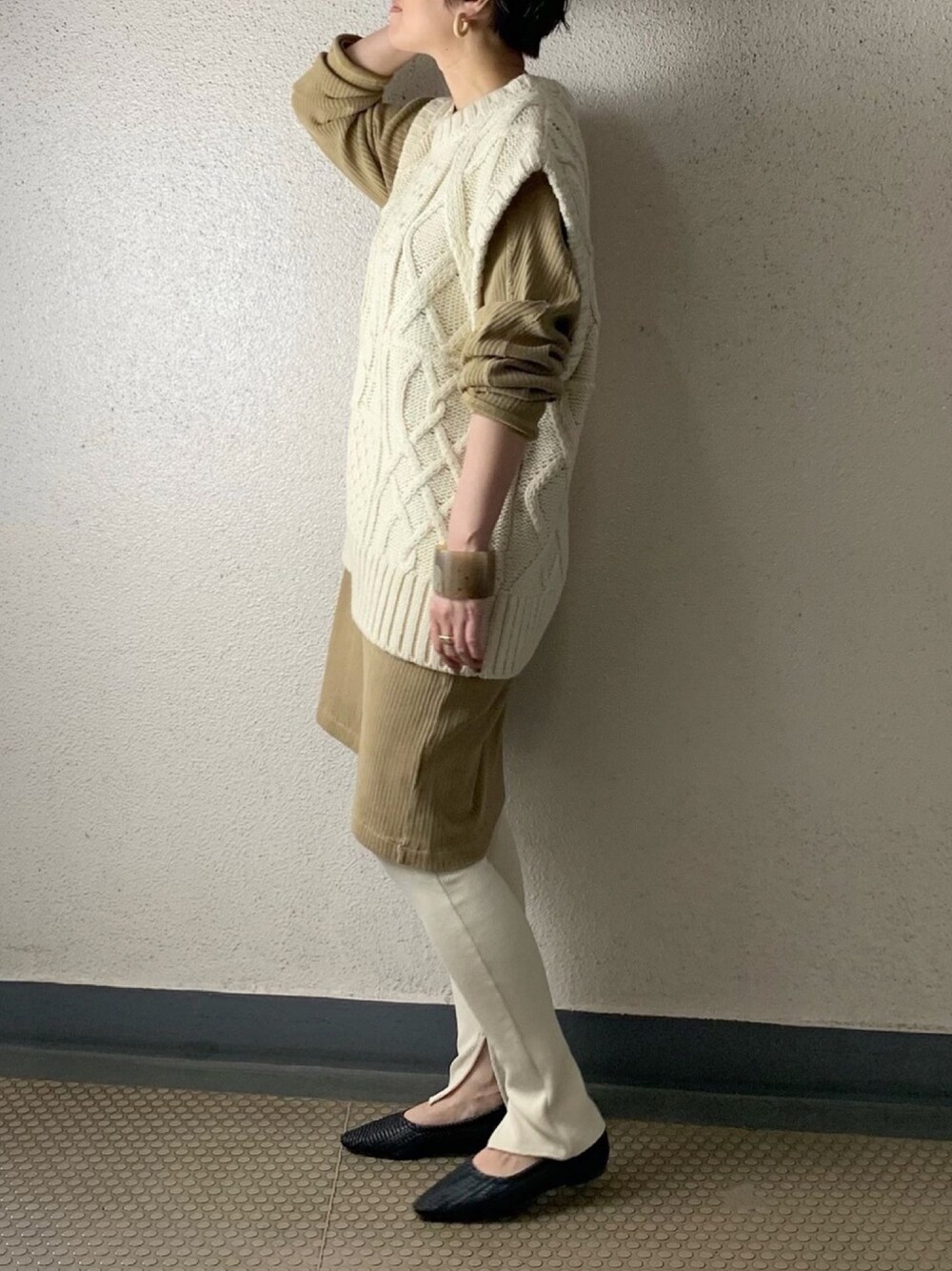 mayu.tのニット/セーター「ケーブルニットベスト」を使ったコーディネート
