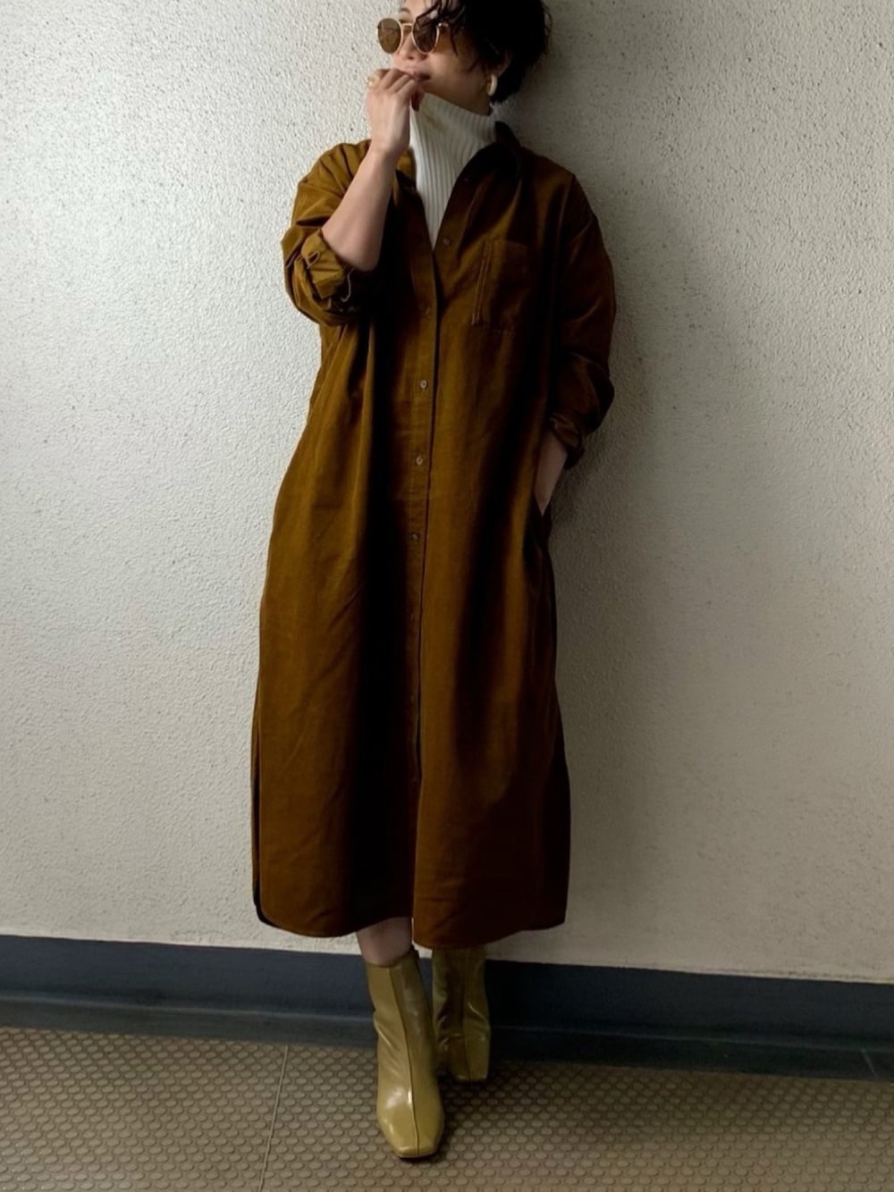 mayu.tのワンピース「コーデュロイシャツワンピース(長袖)」を使ったコーディネート