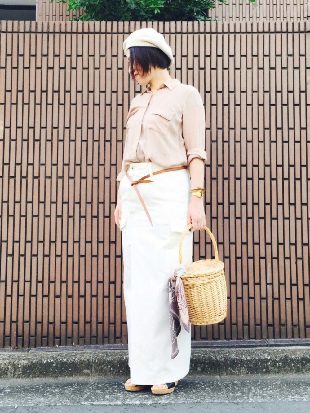 今日は最近よく履いてる デニムのロングスカートにシャツの AMERICAN RAG CIEコーデ。 かごバッグにベレー帽で アクセントをつけてみました✨ これから出かけてきまーす🚶👟✨
