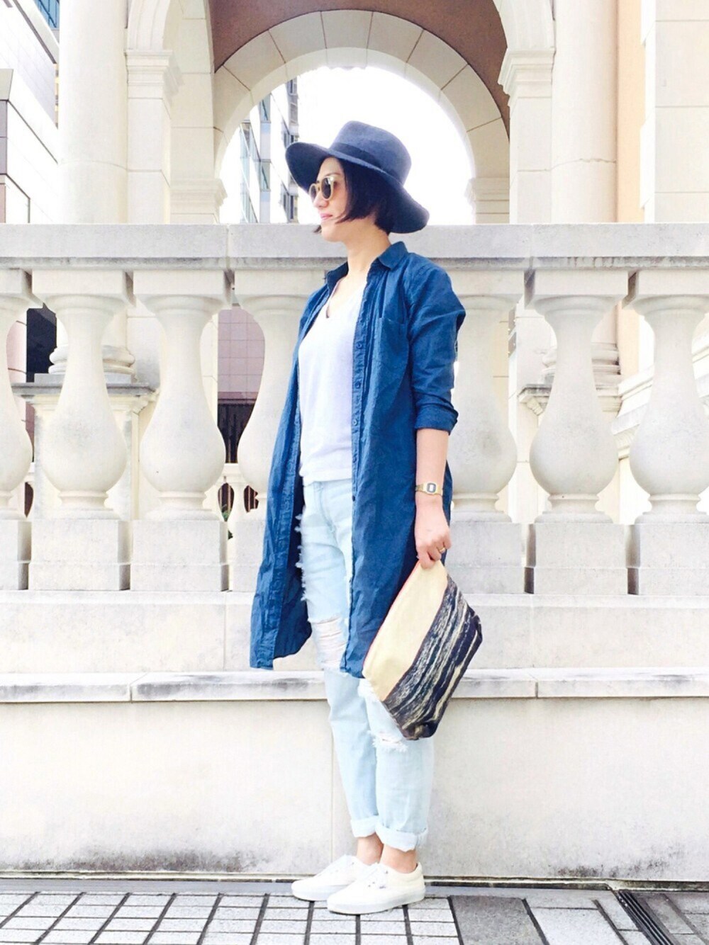 タンクトップにシャツワンピコーデ😬 ボトムスはダメージデニム✨ 淡い色合いのデニムって持ったことが あんまりなかったから自分的に新鮮です。 よーし、金曜がんばるぞー(๑•̀ㅂ•́)و✧
