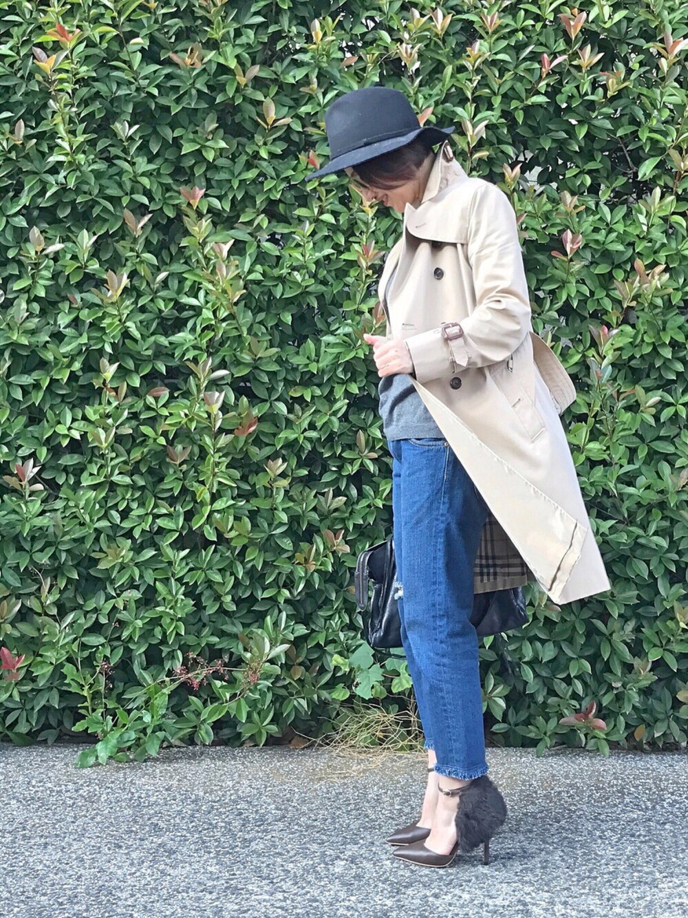 今日は長く愛用してるBurberryのトレンチ♡ デニムにモコモコパンプスとバレンシアガ🍁🌬 寒い〜😨