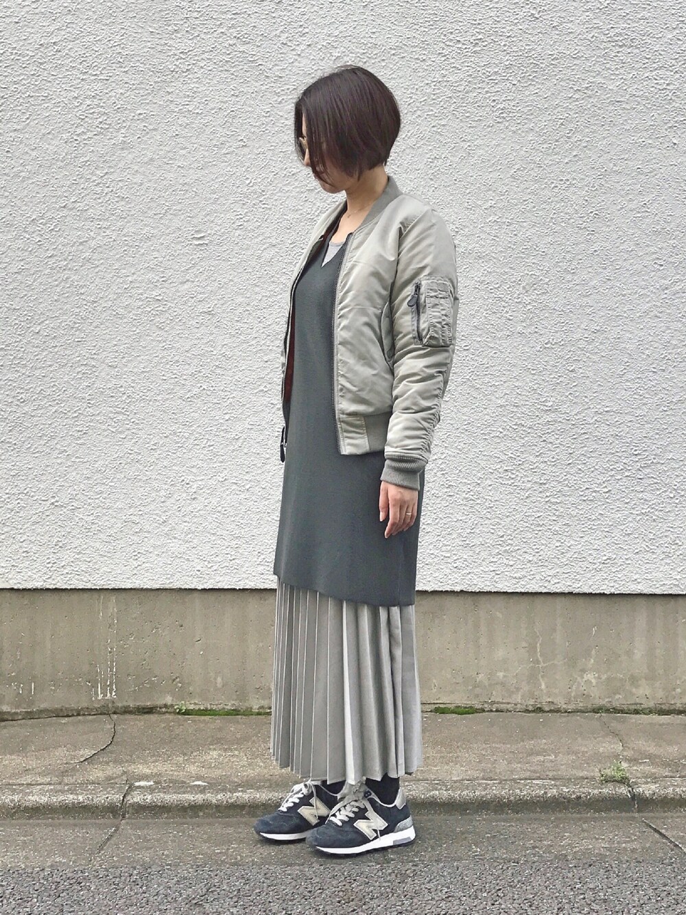 シルバーのMA-1に ユニクロUのミラノリブニットと 同じくユニクロのプリーツスカートです✨ こんな感じの色数抑えめが好みです😀 今日明日はゆっくり楽しむ休日〜😀 麦とろご飯、食べに行こうかな🤔✨😊