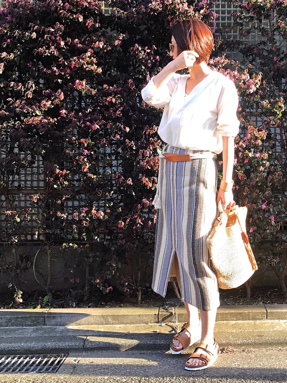 大人なスタイルで、きちんと組んだ ホワイト基調のきれい目コーデ🖤 ストライプスカートはこれから いろんなアイテムと合わせてみます🌈 TODAYFUL、可愛いの多くてかなり好き❣️ 足元のBIRKENSTOCKは 日本別注のMILANO2017です🙂 何にでも合うからウッカリすると こればっかり履きそうになるくらいの使い回しやすさです。 なんだろ?ストラップの角度?触り心地が いいのとクッション性が、実は高くて 歩き疲れない感が他のビルケンよりあるかなぁ🖤 サイズはジャストで履くのがいい気がします🤔 ヌバックの質感と選んだブラウンの落ち着き感が 自分の持ってる服にことごとくハマってきます👍 良かったらオススメ🎶 ネイビーもあるみたい💙