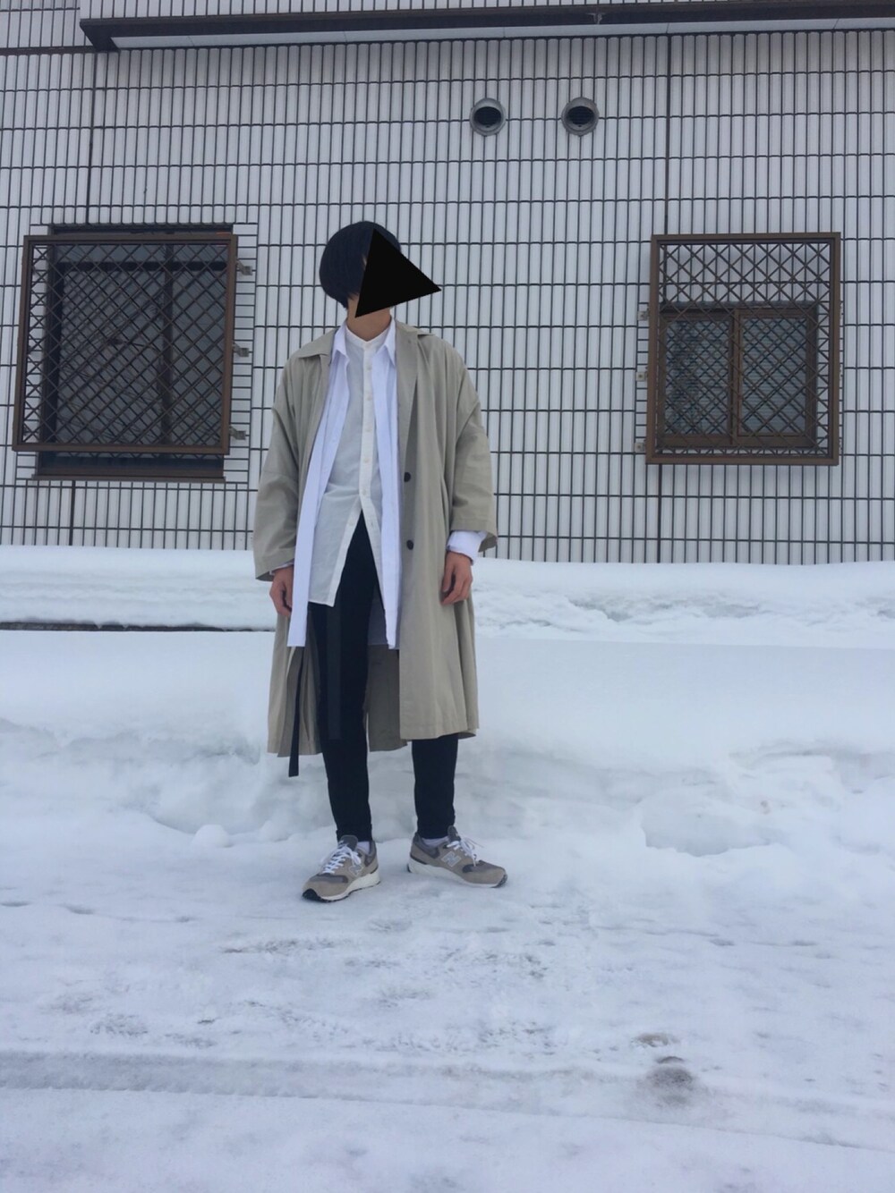 アキヨシ オクダのステンカラーコートを使ったコーディネート