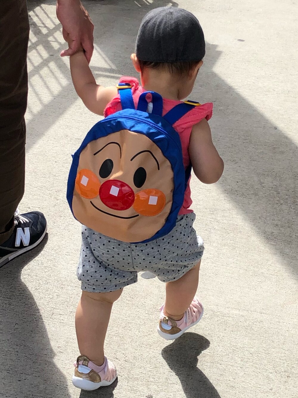 ちょっと前の買い物コーデ! アンパンマンにハマって自分でこのバックを持って行くと玄関前に準備してた(^^)笑