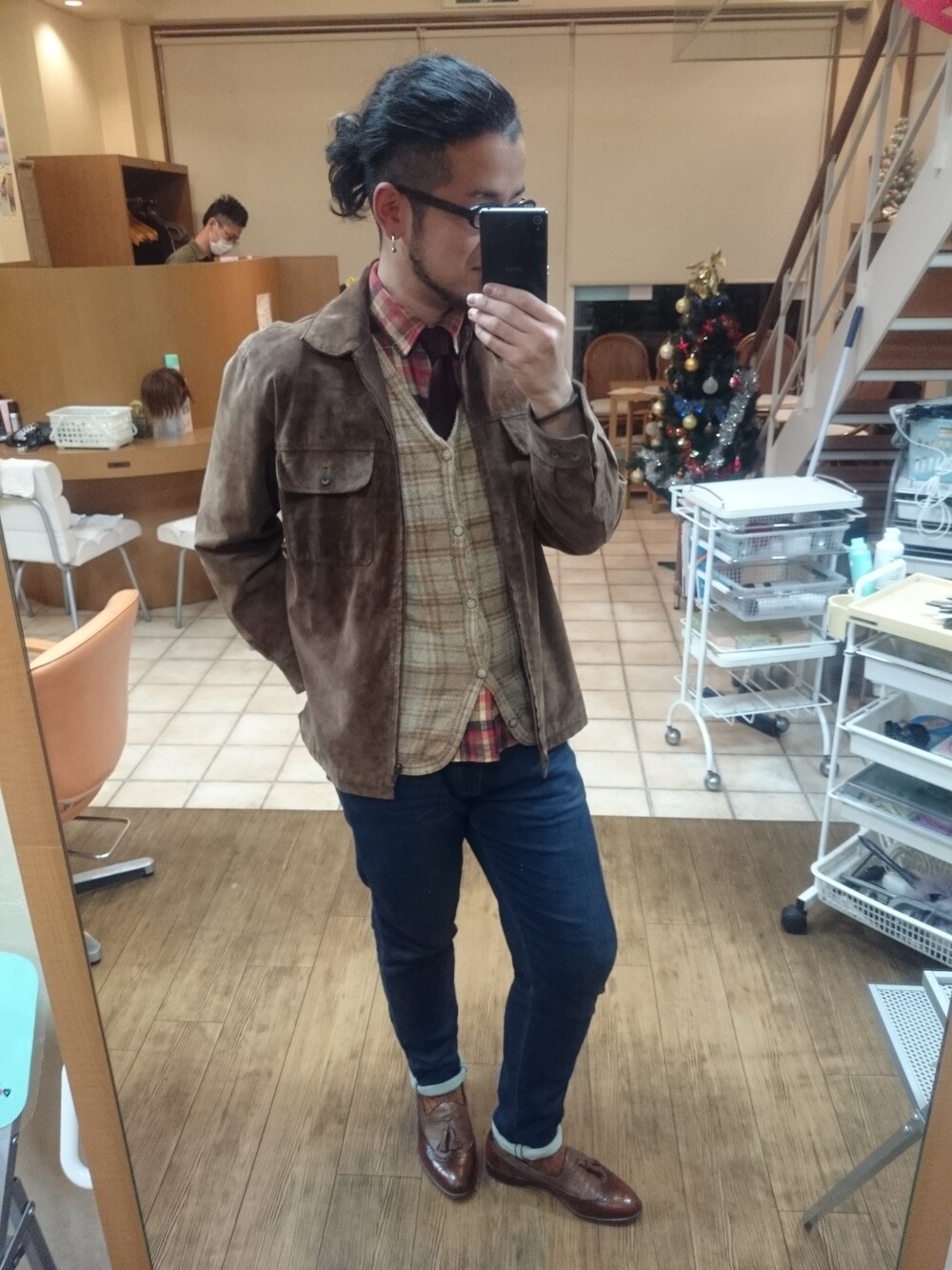 皆さんこんばんは! 今日は記念すべき100コーデ目になります💣 WEARを始めて早三ヶ月😱 ほぼ毎日更新した計算になりますね😅 飽き性な自分ですが我ながらよくやってるなと感心します(笑) しかしながらこれだけ続けてこれたのも皆さんのお陰だと感謝しております❗ ありがとうございます🙇 僕のへんてこりんなコーデにいつもイイネして頂きましてありがとうございます😂 さて、コーデの方ですがチェックonチェックにスウェードのジャケット?を羽織って少し大人っぽく仕上げました😅 パンツは前に登場させましたスウェットデニムでラフな装いに。 一応ジャケットなしものせましたので気が向いたら見てやって下さい🙇 今日はこんな感じで💦 ご訪問ありがとうございました😌