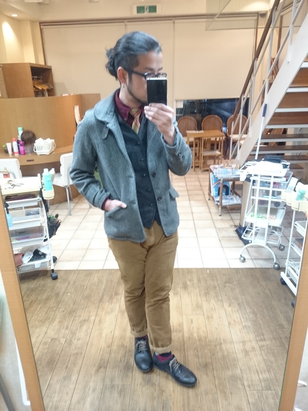 皆さんこんばんは! 今日はこんな感じです(笑) このタイプのジャケット?は初めてなんですが一体何て言う名前なんでしょう?(笑) 何方かわかる方教えてください😂 無知ですいませーん💦 てか、写真わかりにくいですかね?😅 細かい斜めストライプが入っていて首にベルトが付いていてボタンは襟元までとめられるようになっています😅