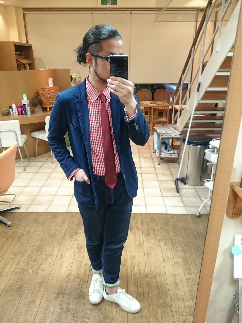 皆さんこんにちは! 今回のコーデはセットアップ風にしてみました。 スウェットデニムにコットンジャケットの組み合わせでラフさを出してみました。 インナーは赤のギンガムに赤のネクタイで。 なんか漫才師みたいになってるような(笑) 今日はこんな感じで😅 ご訪問ありがとうございます🙇