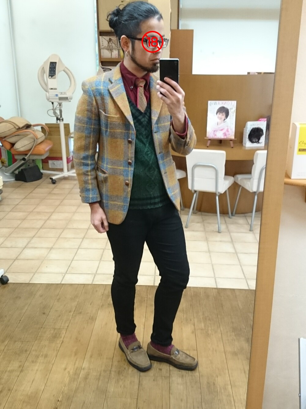 皆さんご無沙汰しております🙇 久々の投稿です。 コーデはお気に入りのチェックのジャケットをメインに色味のバランスを考えつつ無難にまとめました(笑) パンツはジョガーのスリムフィットのテーパードなんですがちょっとピタピタ過ぎですねー😅 伸びるかと思いタイト目を選びました(笑) シューズは古着屋で見つけたフェラガモのビットローファーです。 1300円だったので迷わず購入(笑) 今年も古着屋さんにはお世話になりまくってます💨 では、今日はこの辺で🙇