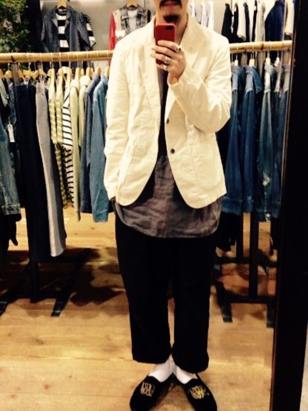 ジャケット:engineered garments インナー:auguste presentation パンツ:sasquatch fabrixs 靴下:unused 靴:needles リング:martin margiera 冷え込みがすごいですね 明日は咲いてるかもわからない 桜を観に行きます