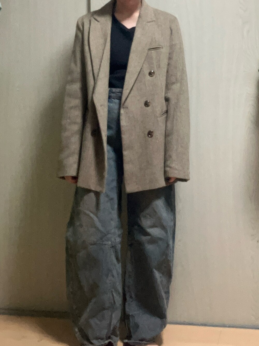 メンズライクなジャケットにワイドなジーンズを合わせてゆるっとシルエットコーデにしてみました🤍