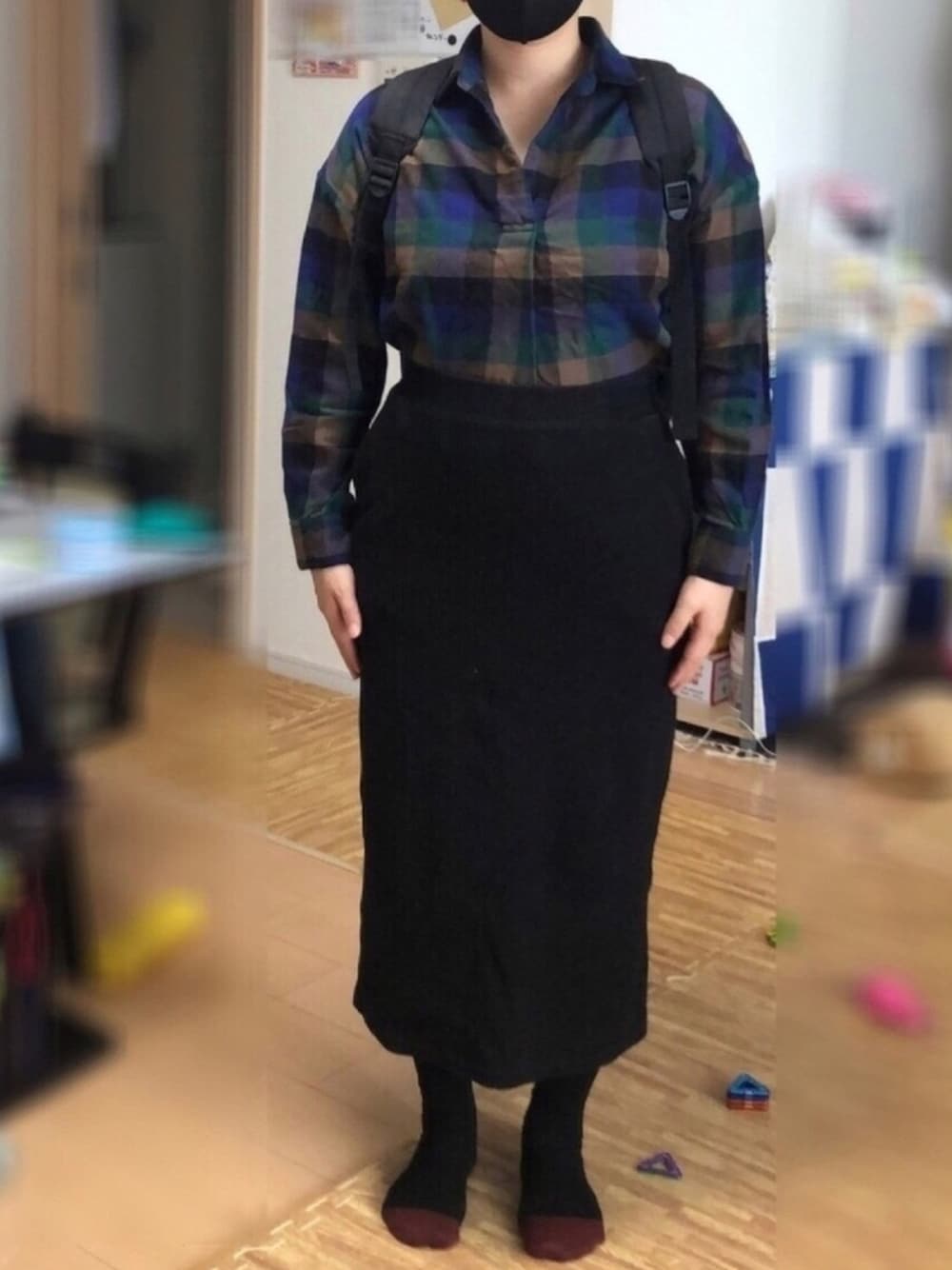 近所のドラスト行くだけやしテキトーでいいわ!というコーディネートなのだが、テキトーすぎて酷いことになってしまった。不審者かな?姿勢が悪いのと色合いが暗すぎるのが原因か。しかしこれもまた記録よ。ぼかしでぼかしきれんほどに部屋が汚くてすみません。
