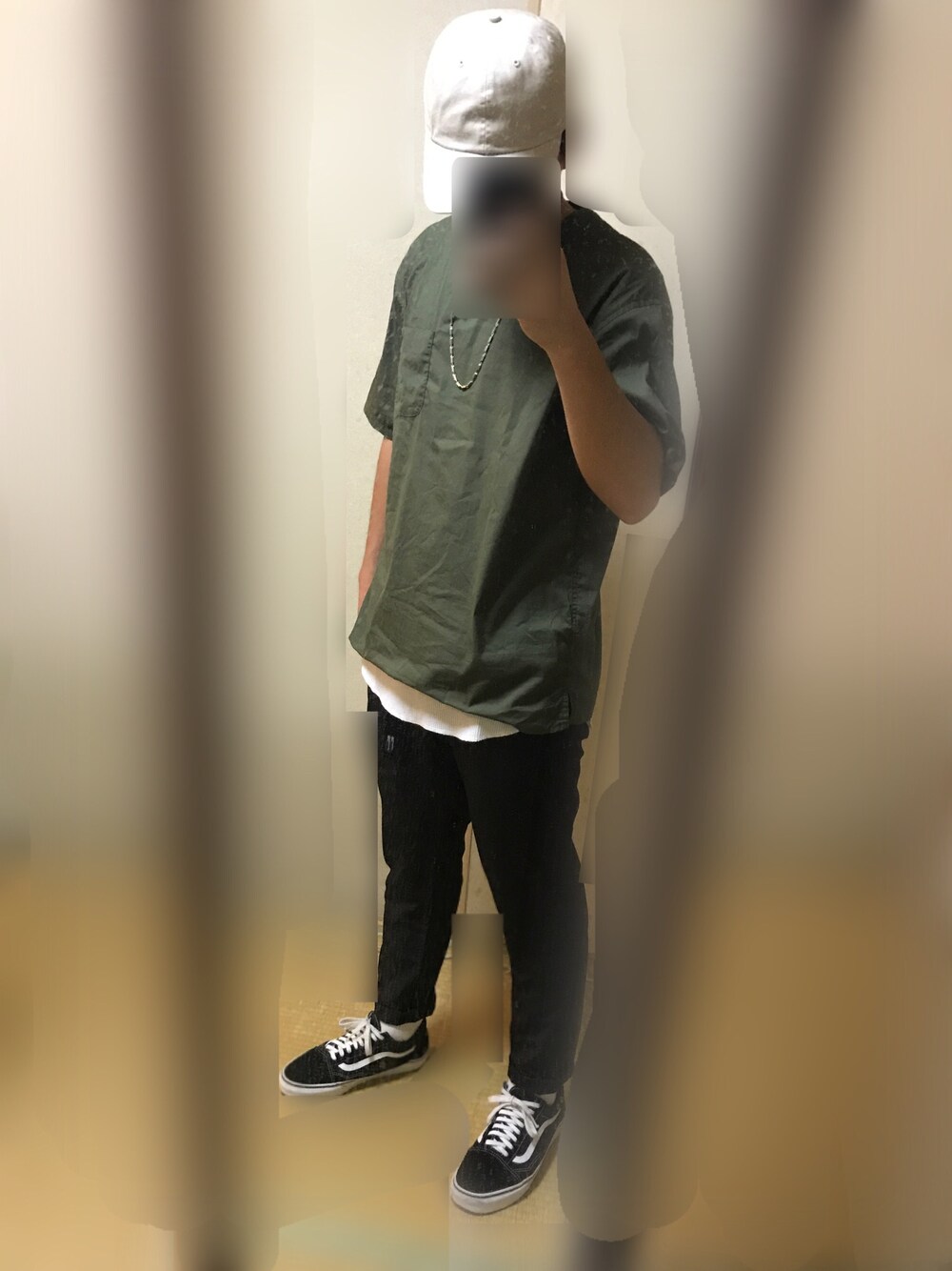 ビックTシャツカーキ、レイヤードコーデです! オールドスクールはなんでも合いますね😆😆😆