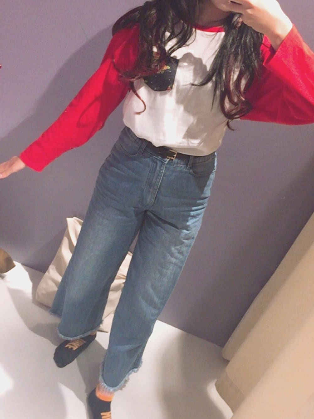 今日は❤︎カジュアルスタイル❤︎ 毛先も赤でいいかんじ☆彡 rodeocrownsのtシャツがお気に入り^ ^